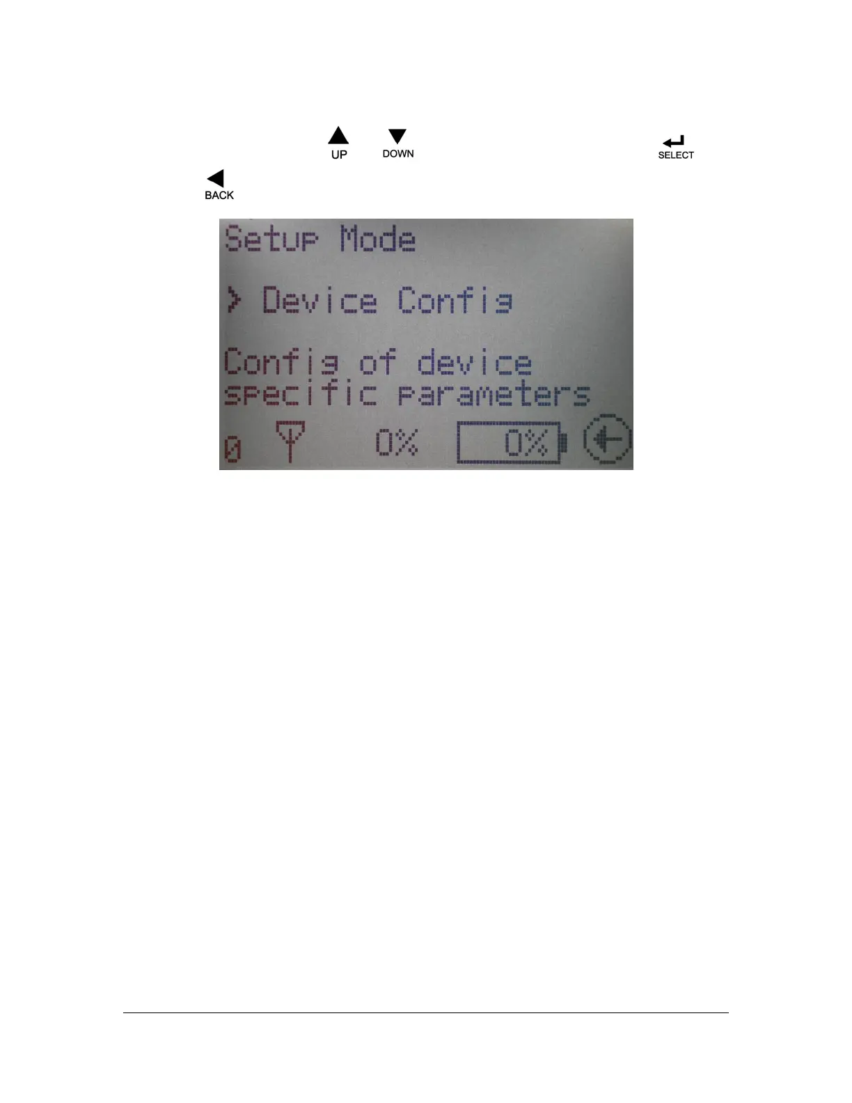 Setup Mode Menu: This screen allows the user to select which Configuration Menu to enter. A