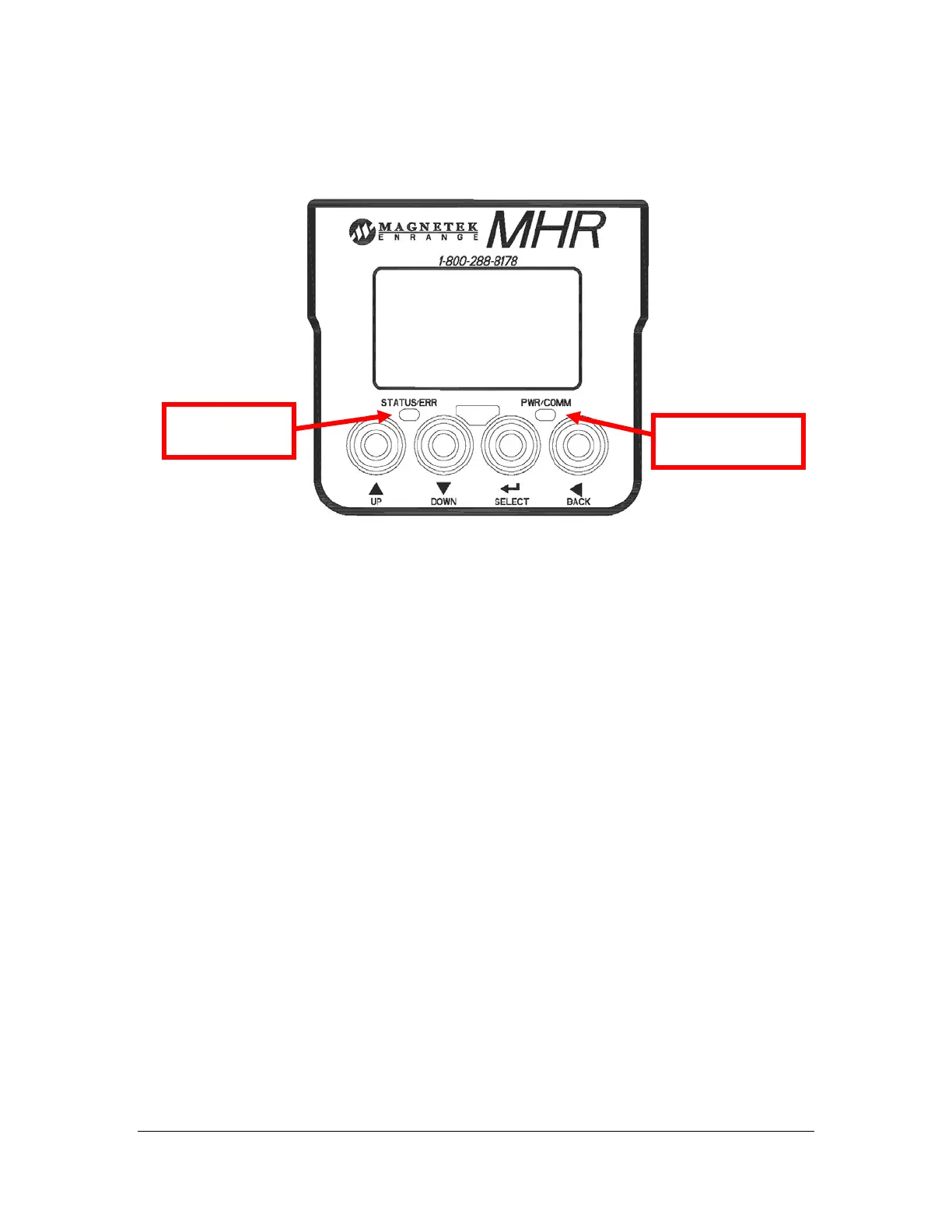 left LED indicates the MHR’s status while the right LED indicates power/communication.