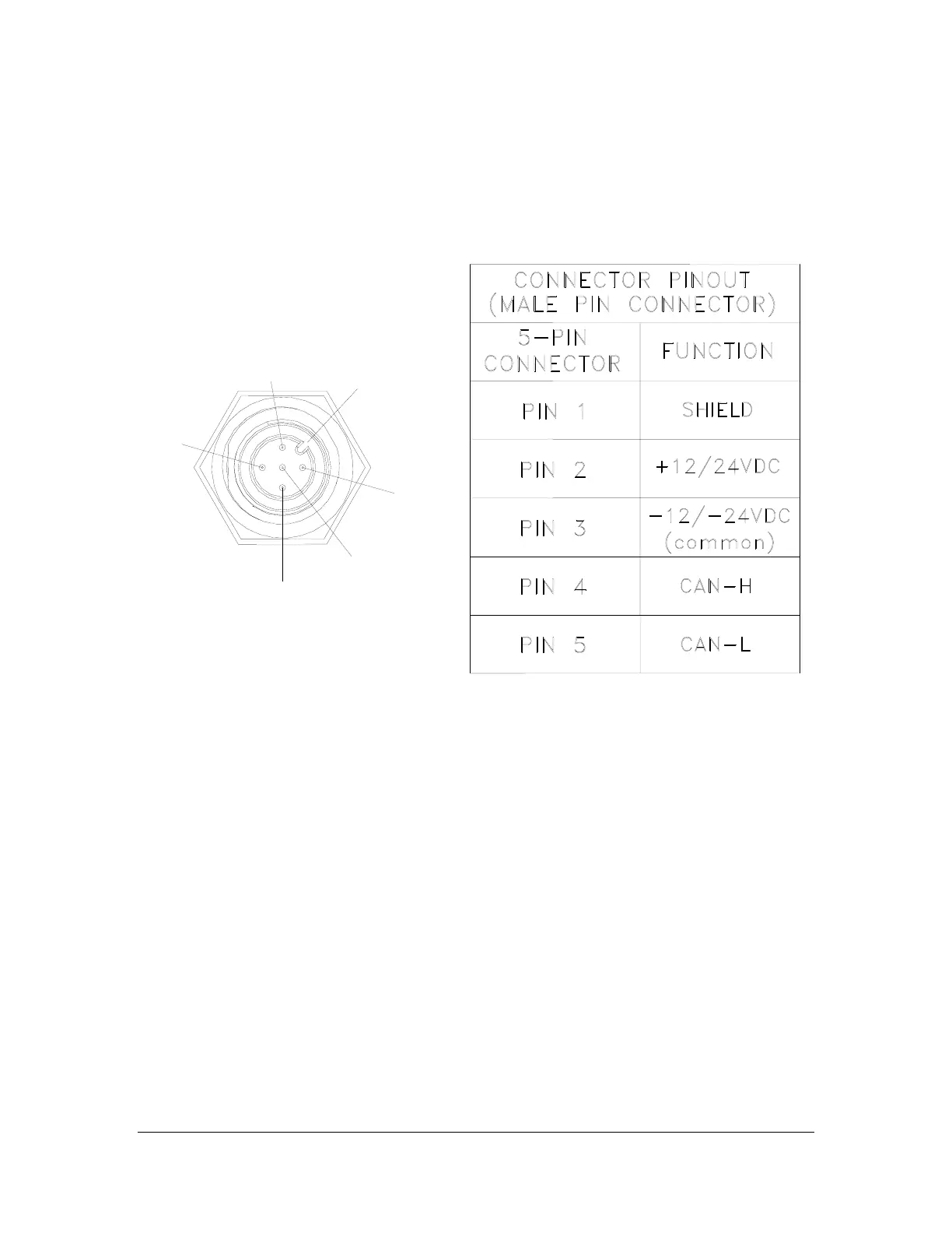 The CAN connector receptacle located on the transmitter has specific pin assignments. It is very