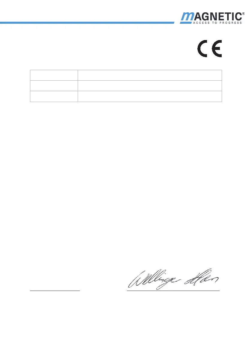 The manufacturer MAGNETIC AUTOCONTROL GmbH hereby declares for the product supplied by him: