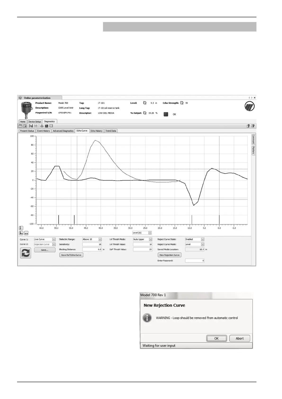 Select the Diagnostics tab and then the Echo Curve tab.