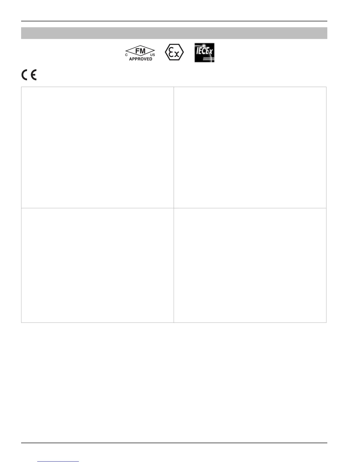 FM3600:2011, FM3610:2010, FM3611:2004, FM3615:2006, FM3616:2011, FM3810:2005, ANSI/ISA60079-0:2013,