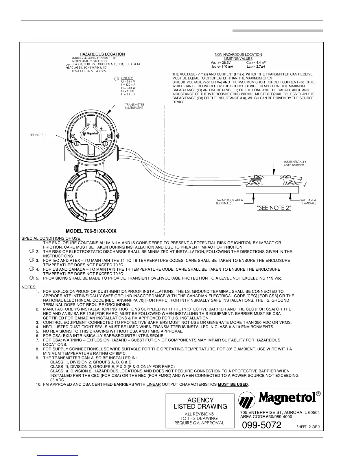 Magnetrol Eclipse 706GWR - Agency Specifications (IS Installation)