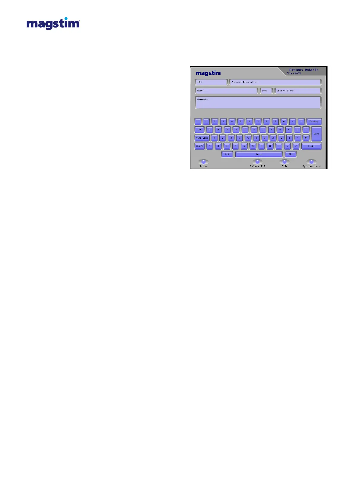 ID#: Press the window to select. The Patient ‘ID’ window can accept up to 18 characters. Enter