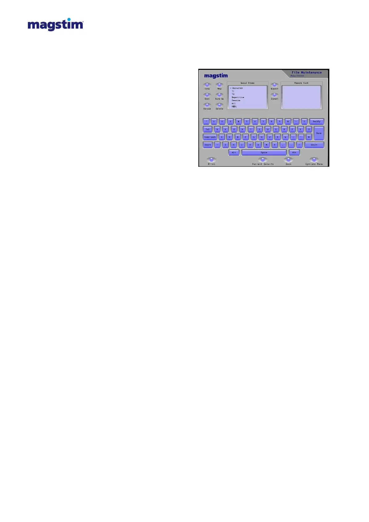 8. Press Open, then Patient Details. The File name will appear in the top right-hand corner.