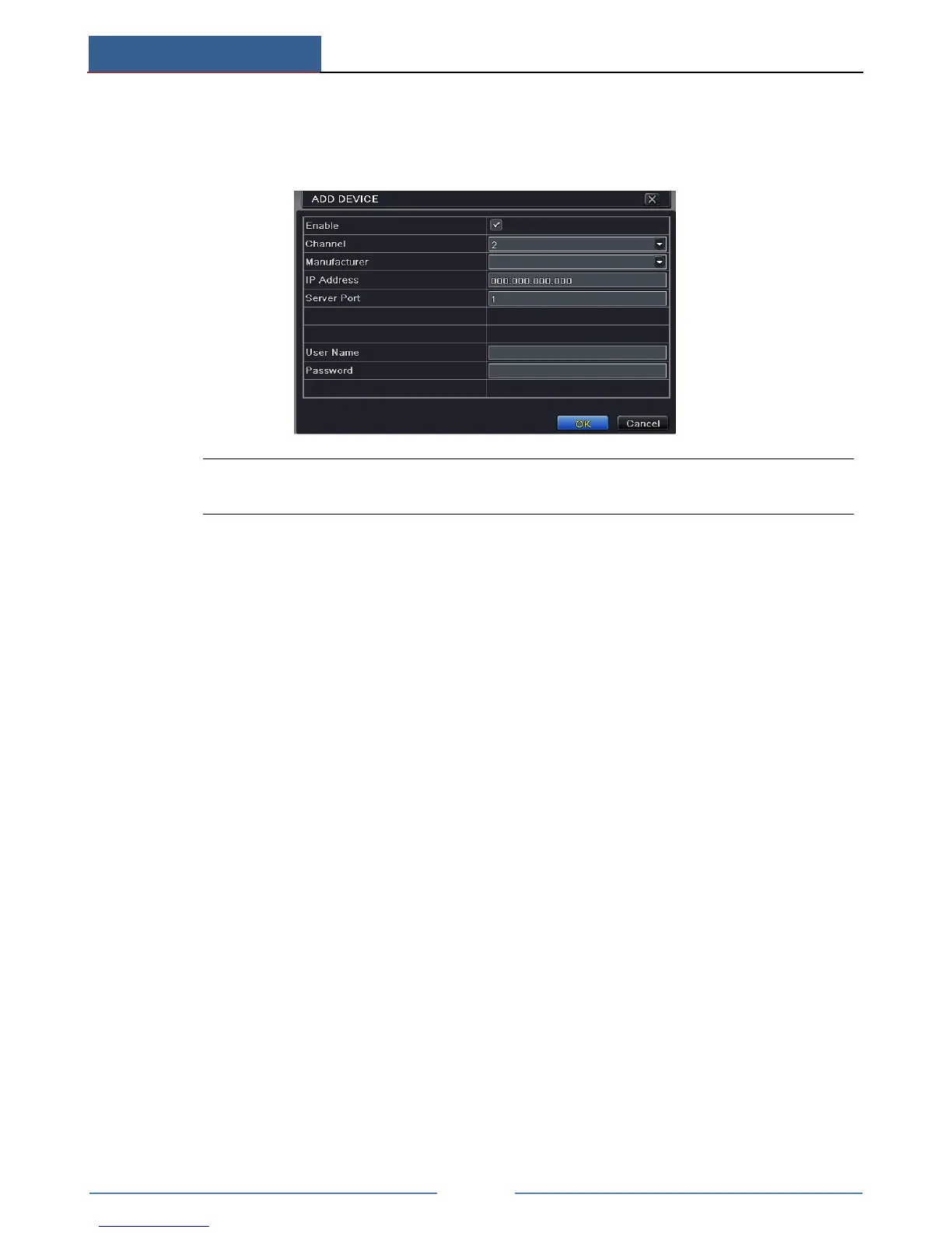 box, select channel and manufacturer and manually input IP address, server port,