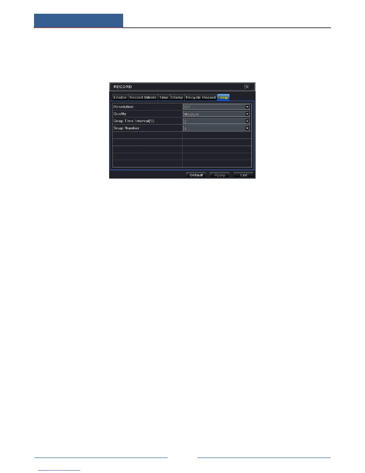 ① Set resolution, image quality, snap time interval and snap number.
