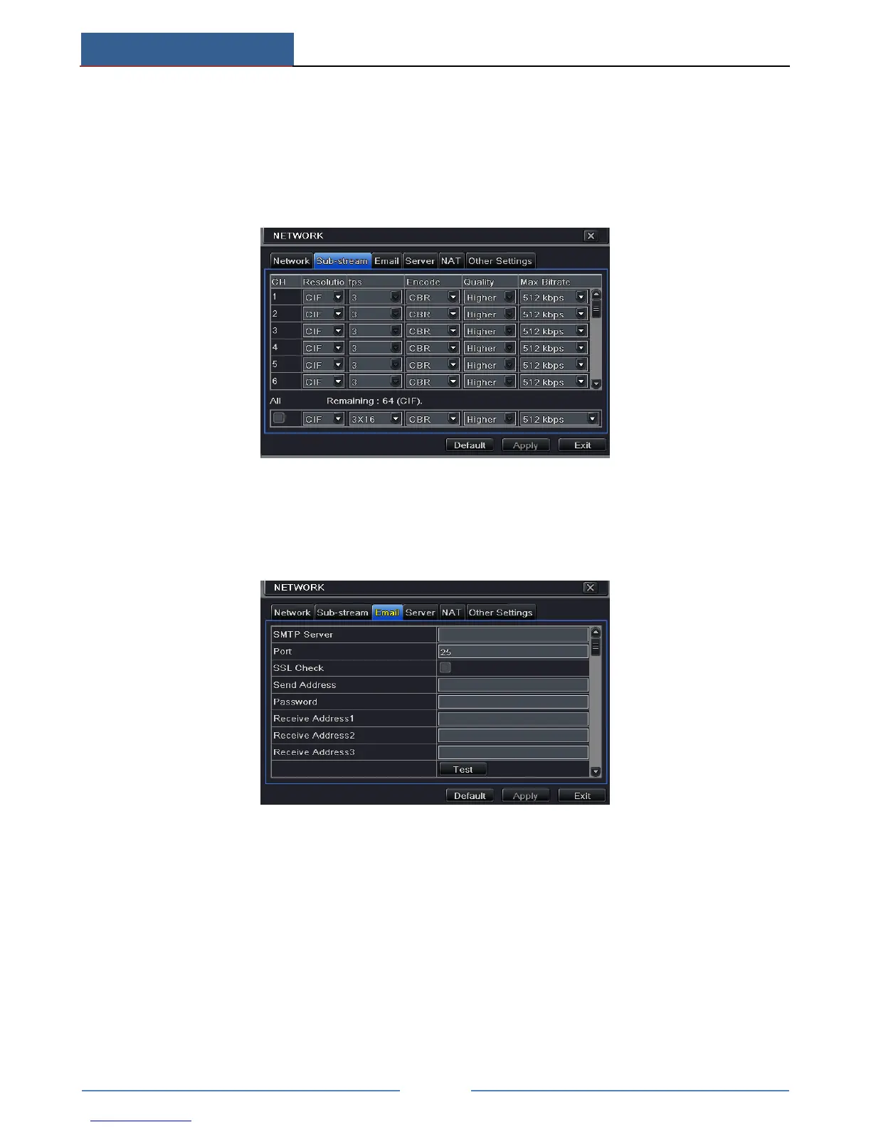 ① Go to Main MenuSetupNetworkSub Stream interface.