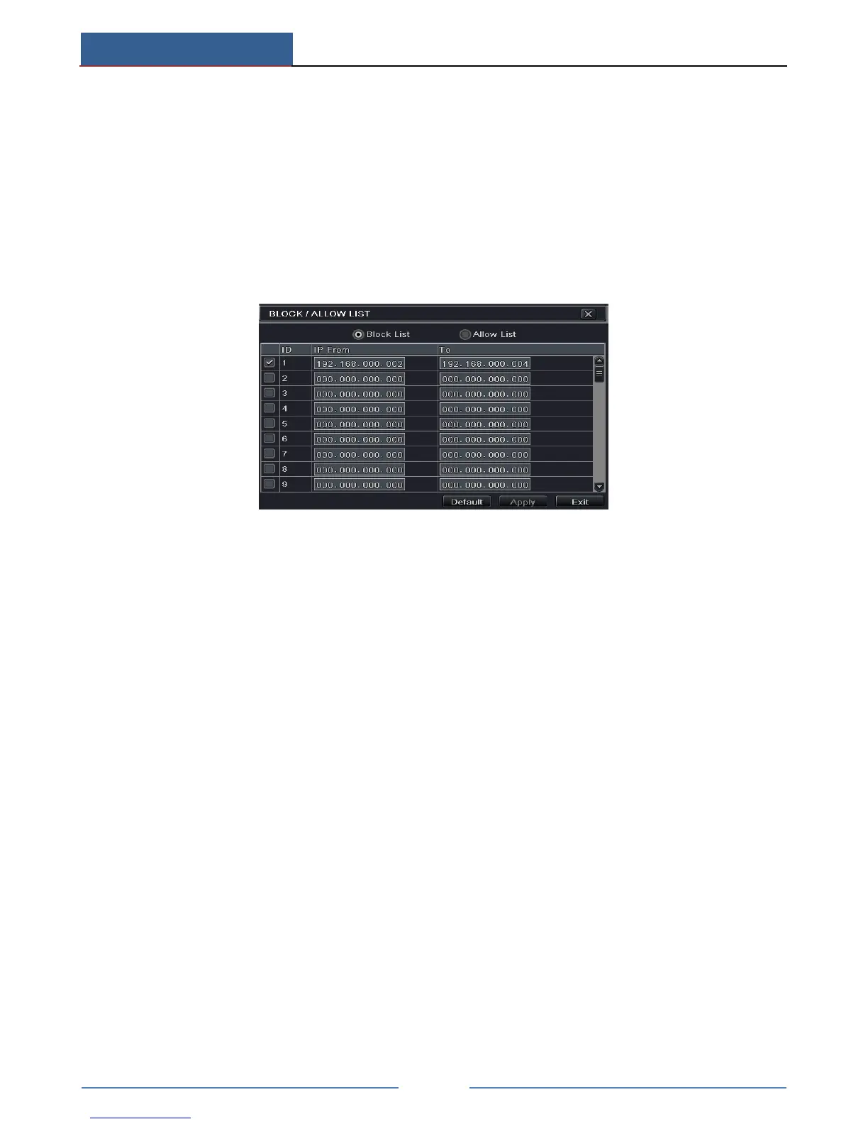 DVR, he can checkmark Block list option, and then input such IP address range. If it is required