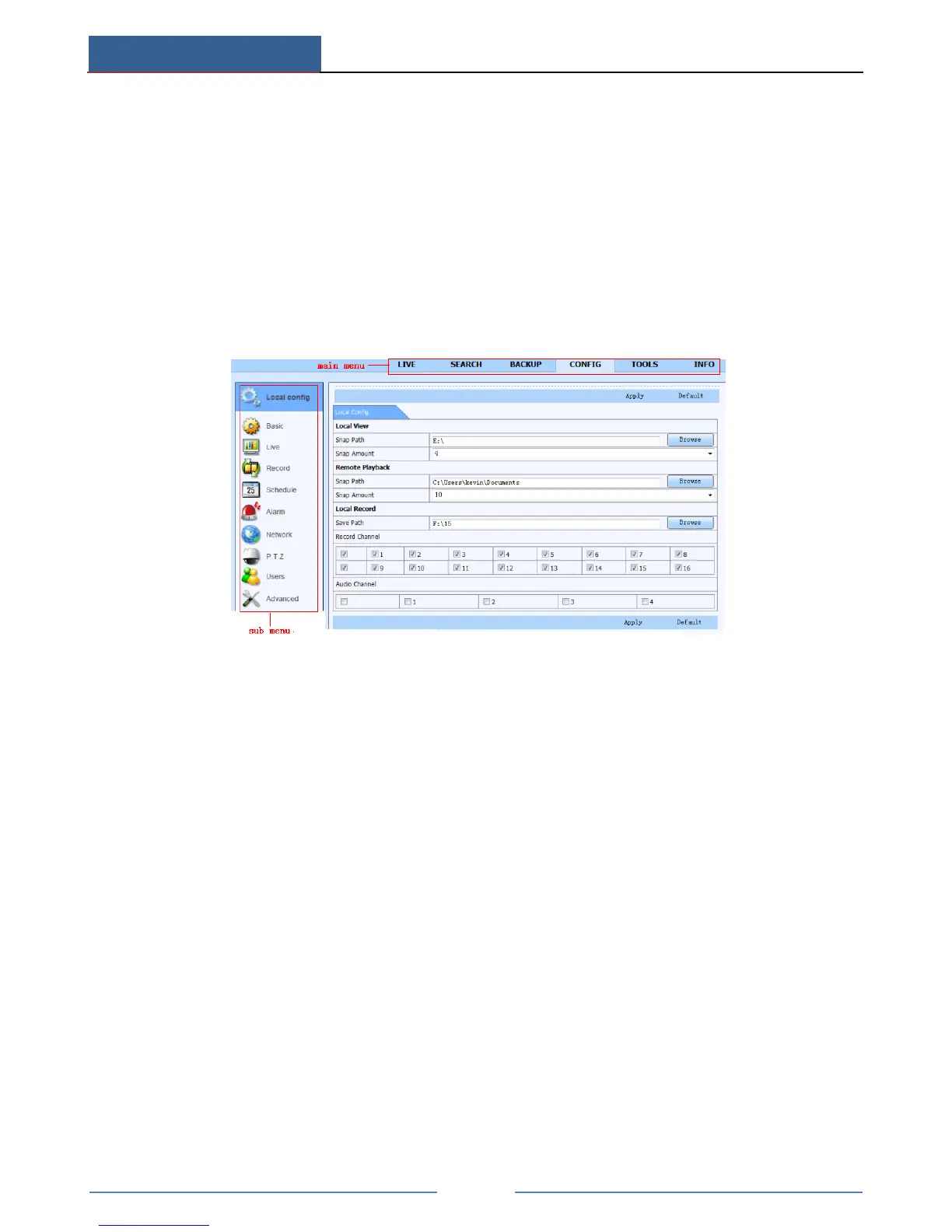 configuration, record configuration, schedule configuration, alarm configuration, network
