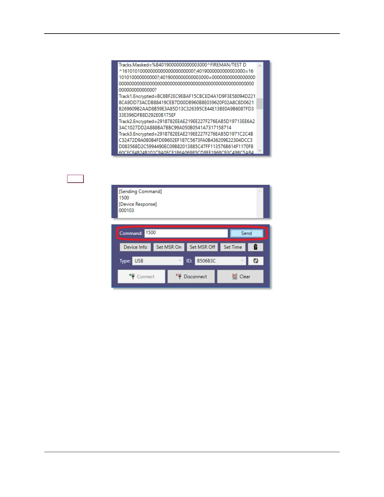 5) If you want to send a command to the device, enter the command in the command text box and press