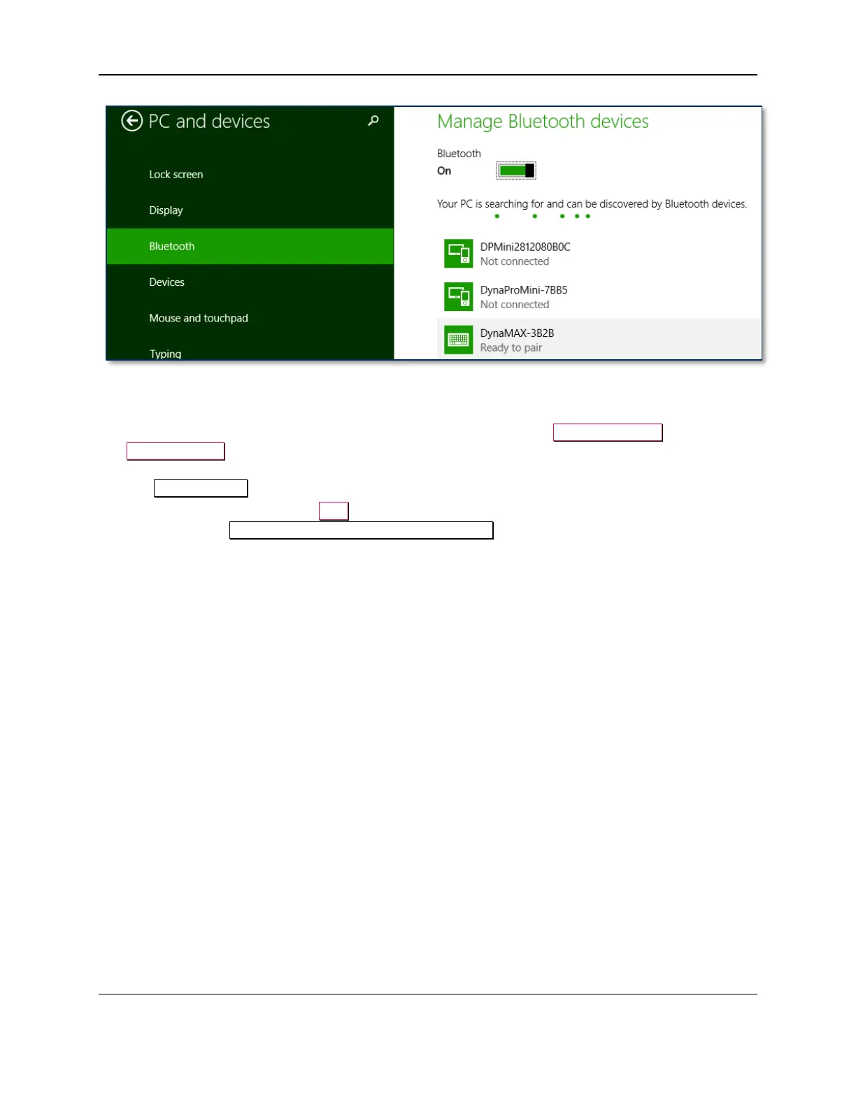 Figure 2-2 – Windows 8 Manage Bluetooth Devices App