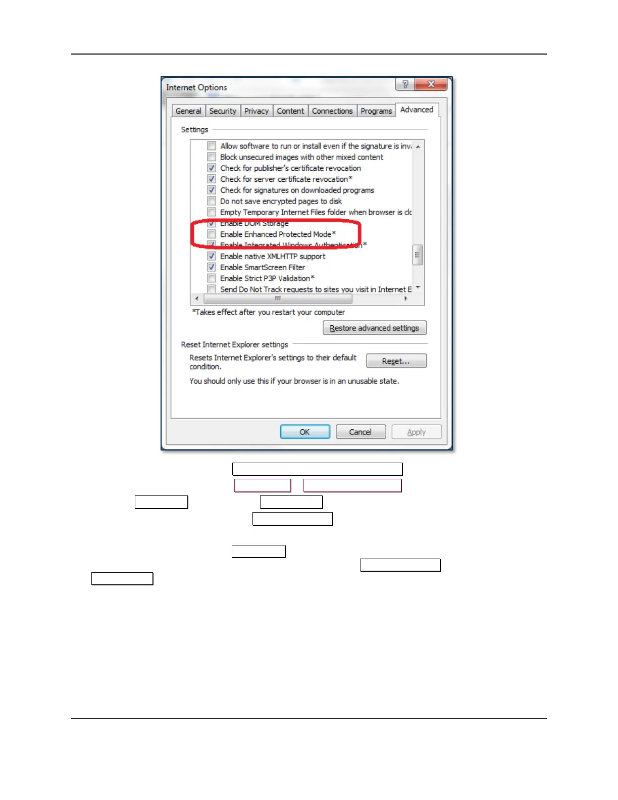 12) If you changed the value of the Enable Enhanced Protected Mode checkbox, restart Windows.