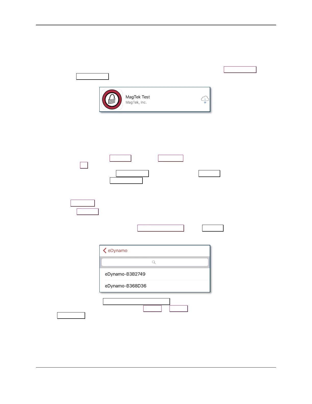 device. If you are using the MagTek Test app, the steps are as follows. Other host software may be