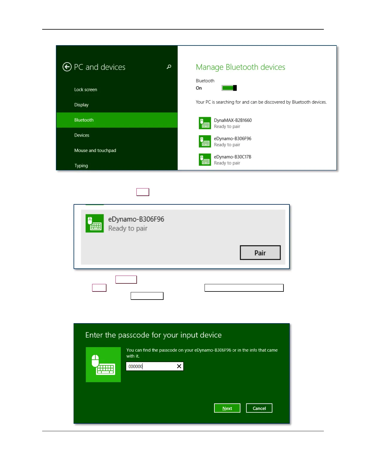 11) Enter default passcode 000000 (or the device’s actual password if it has been configured differently),