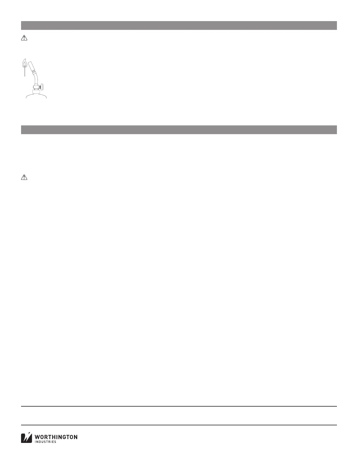 result in a fireball that could cause injuries and property damage. Do not open the valve and allow gas to flow through the torch without