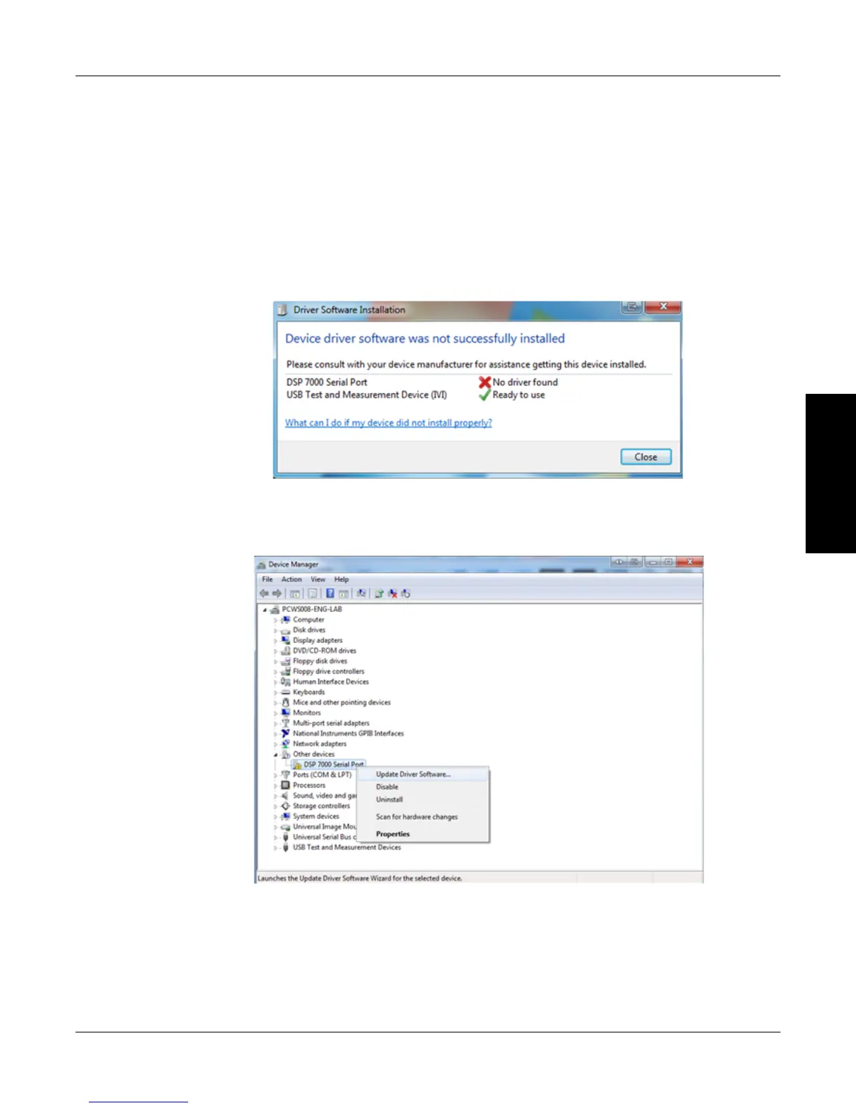 to control the DSP7000. The second interface is a USB Test and Measurement device. Drivers