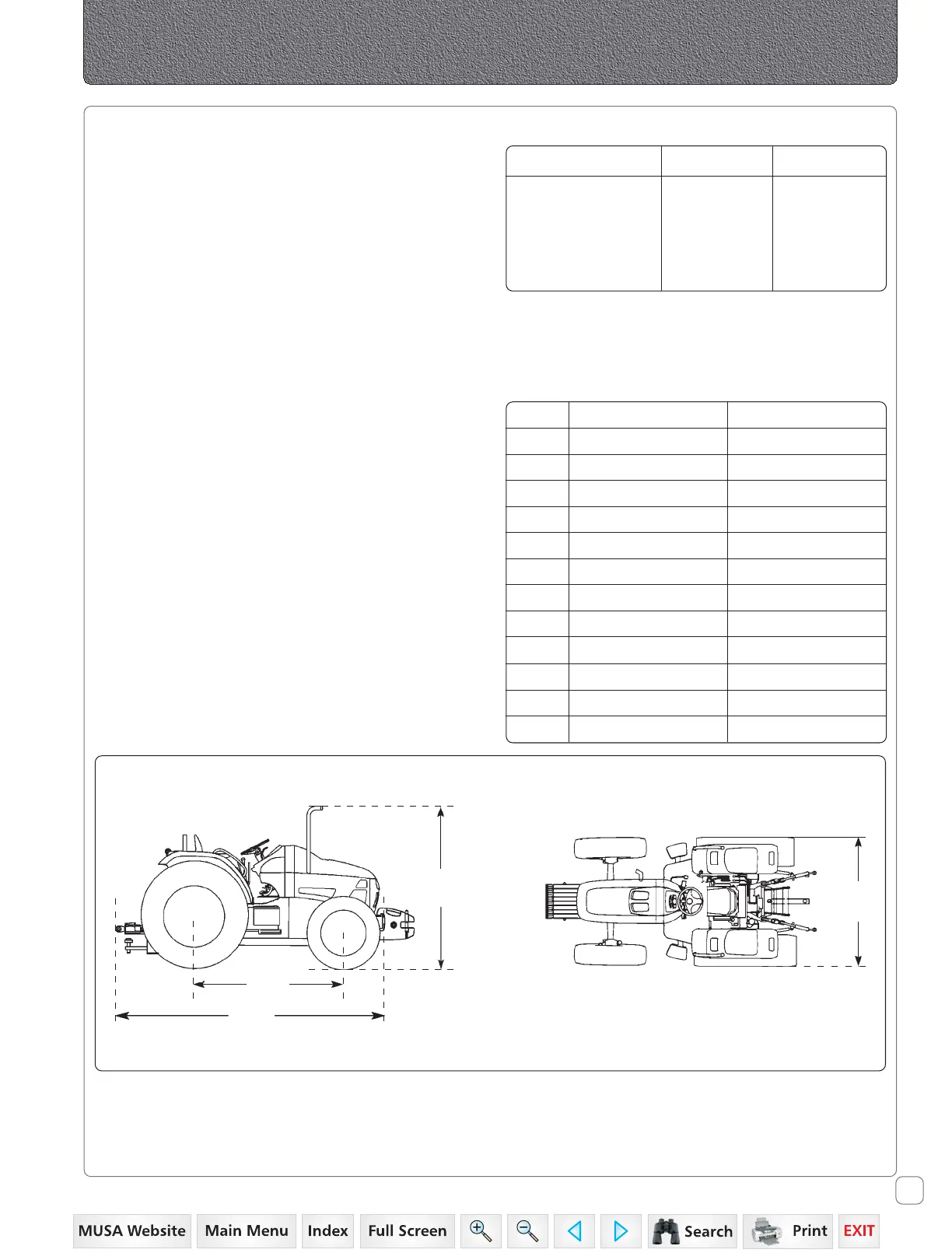 Dimensions are in inch. and based on standard 11L x 15 front tires and 16.9 x 30 rear tires.