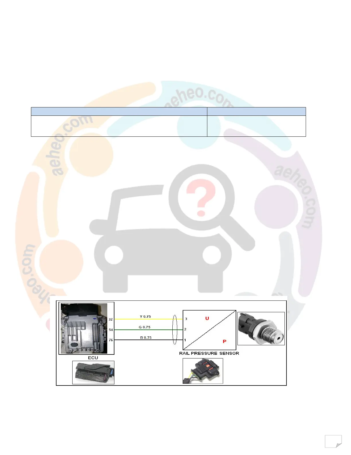 The ECU supplies a reference voltage to the rail pressure sensor. The rail pressure sensor output voltage varies with
