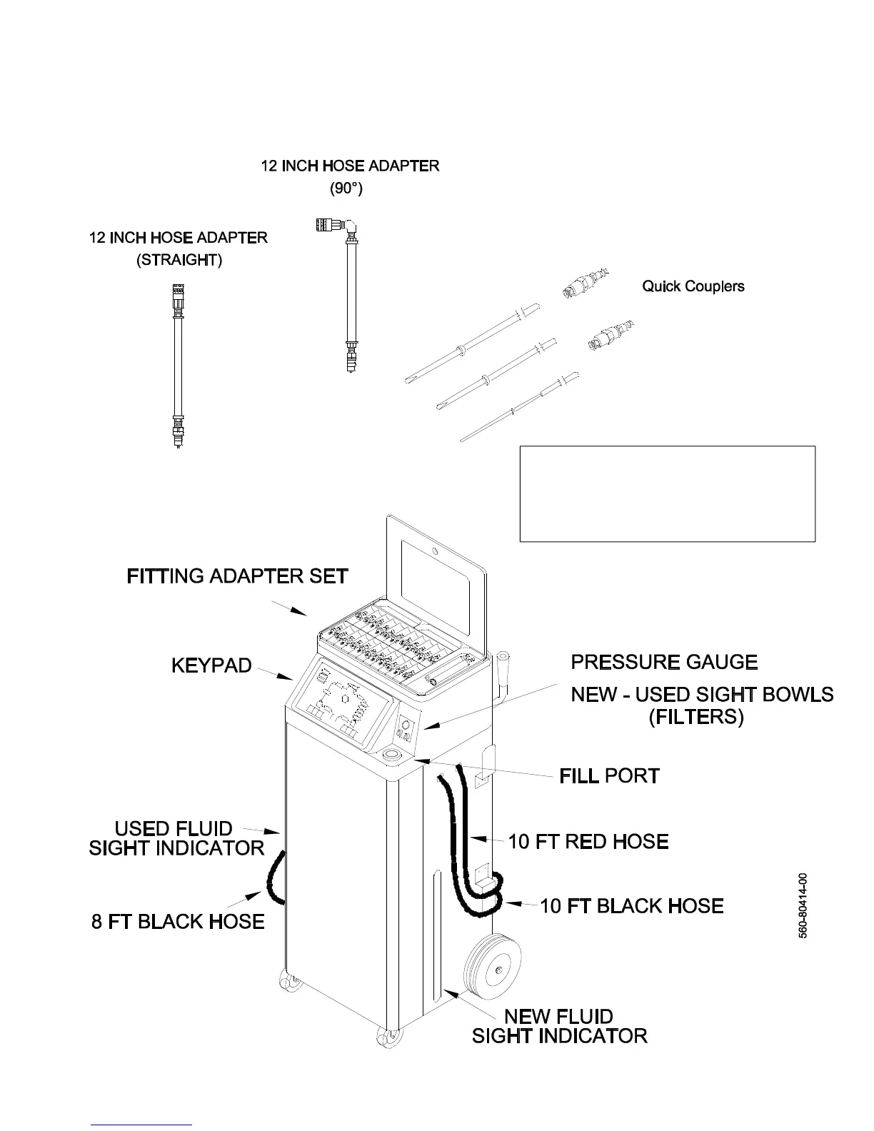 Unpack all components. Use laminated placard to verify fitting adapter quantities.
