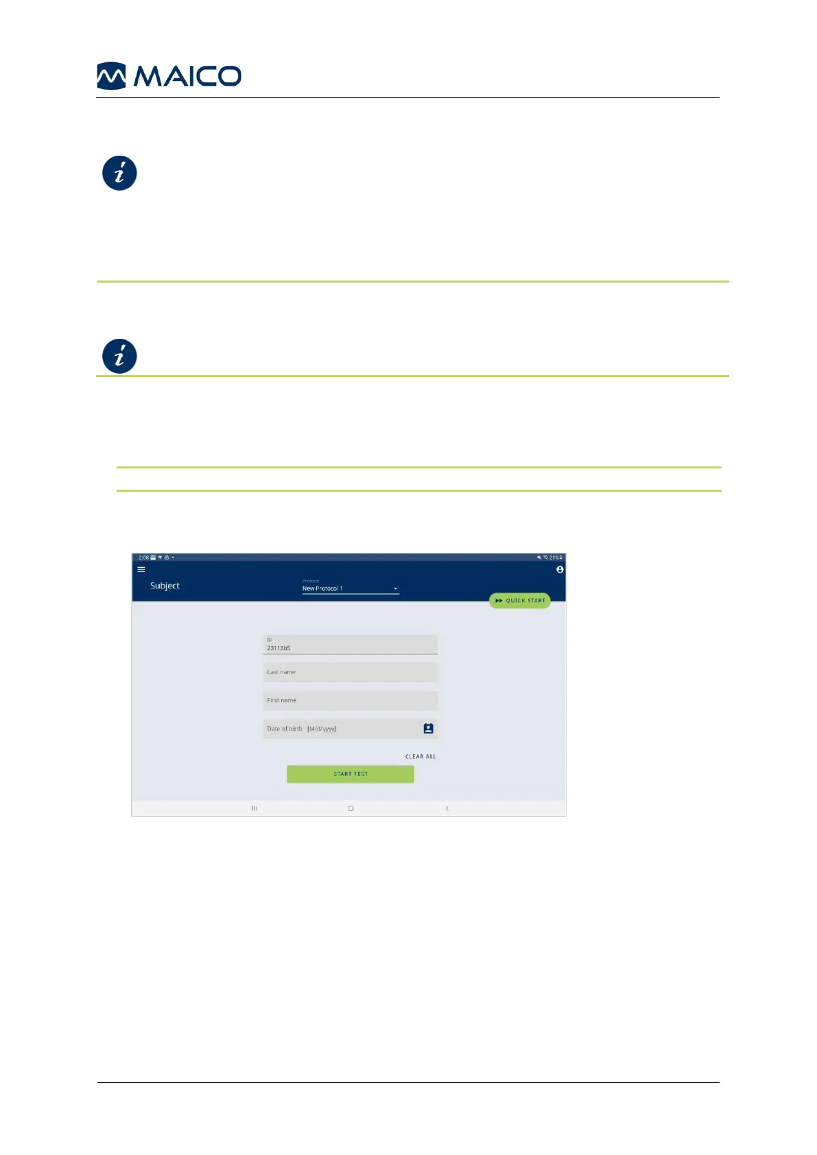 NOTE: From both screens it is possible to start a Quick Test without having created a