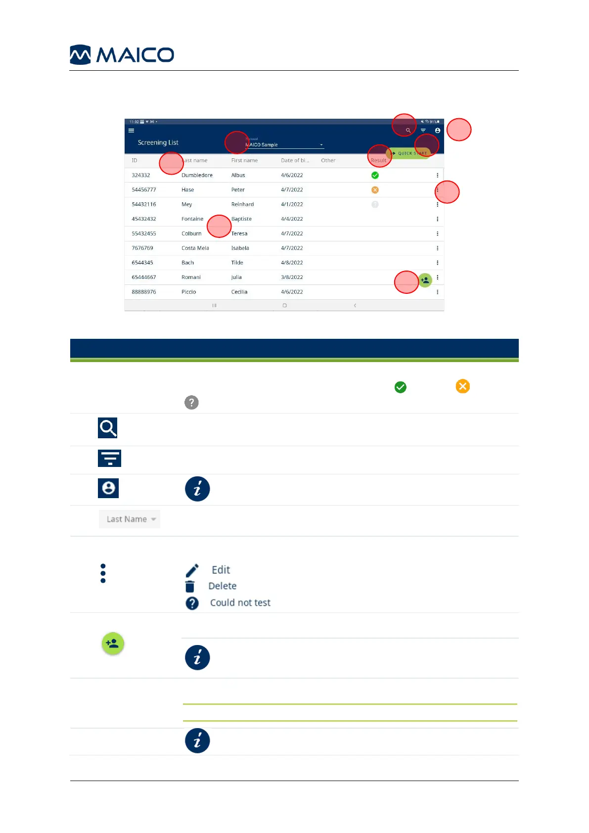 Figure 20 shows the Screening List. Table 3 provides further explanations.