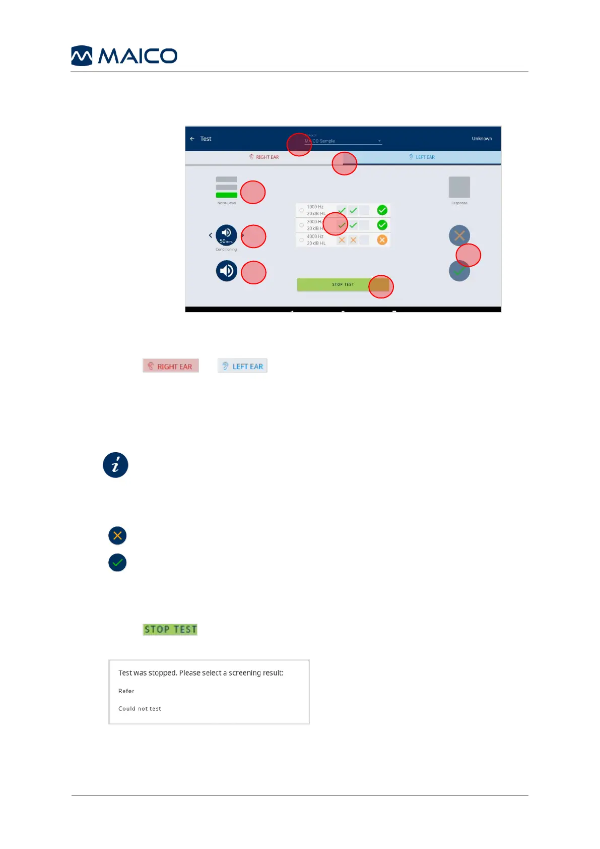 8. Press to stop the test, if testing is not possible anymore (Could not