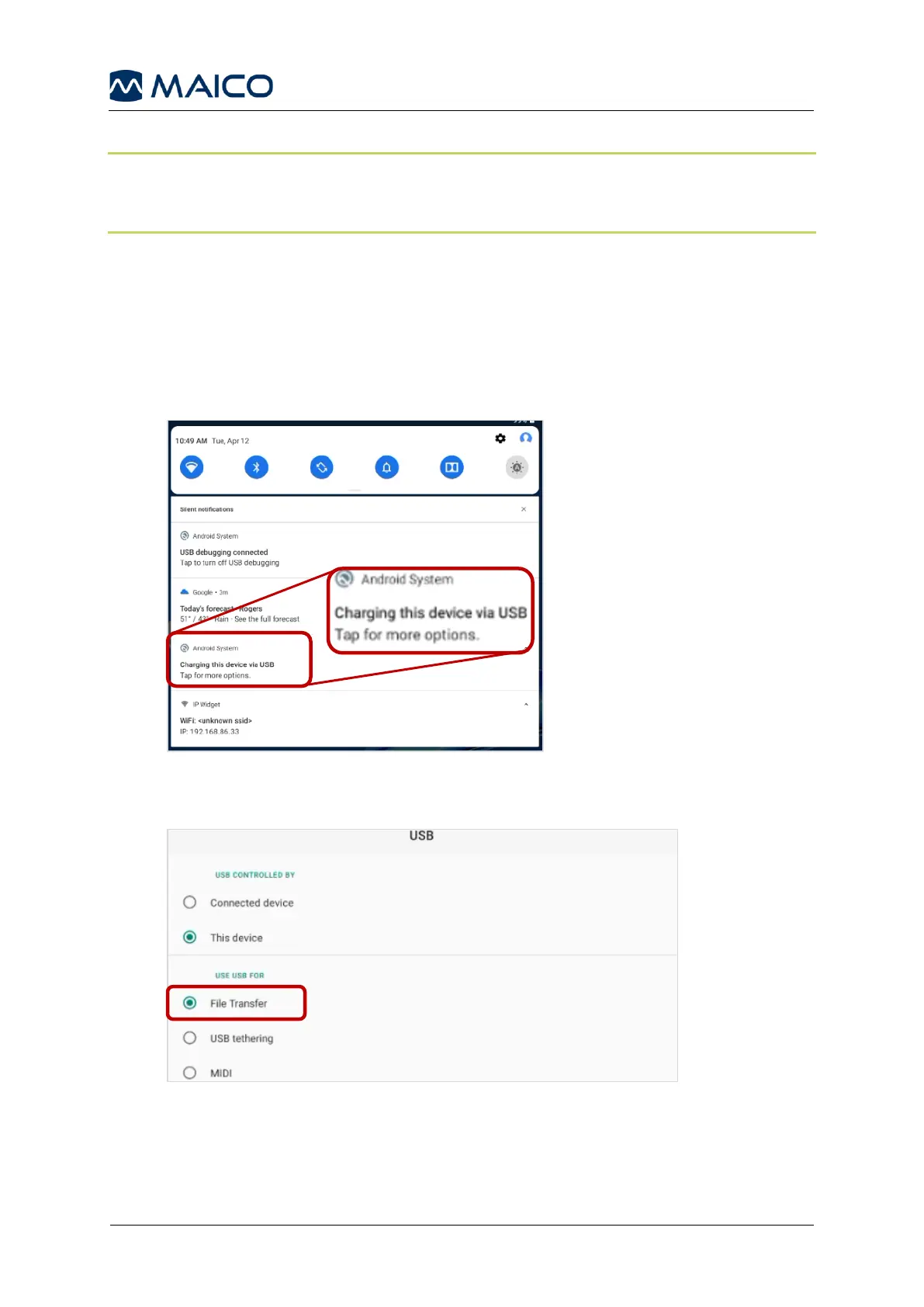 4. Select File Transfer (Figure 39) and leave the USB settings menu.