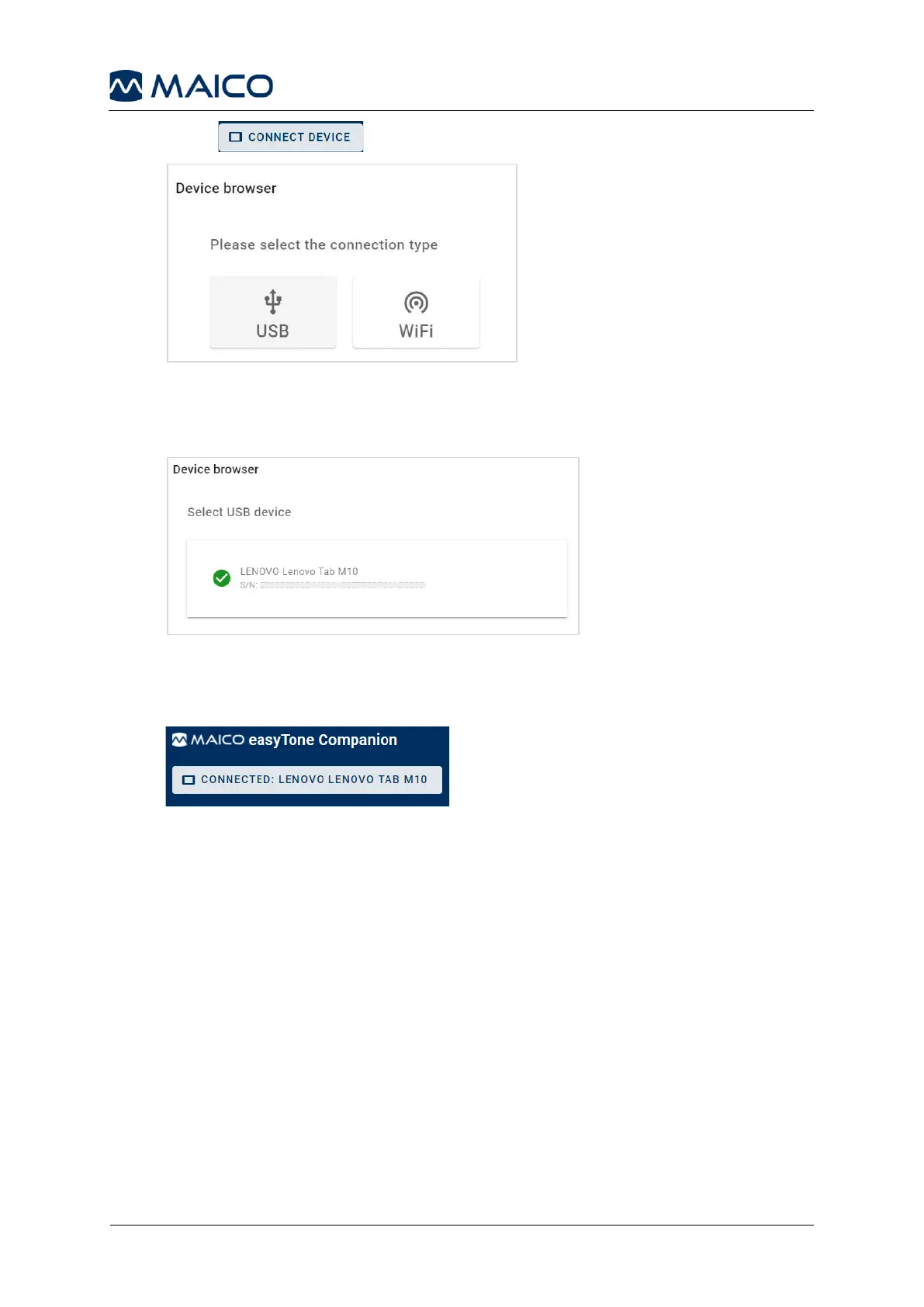 9. Press Close. The connected tablet is displayed in the easyTone Companion