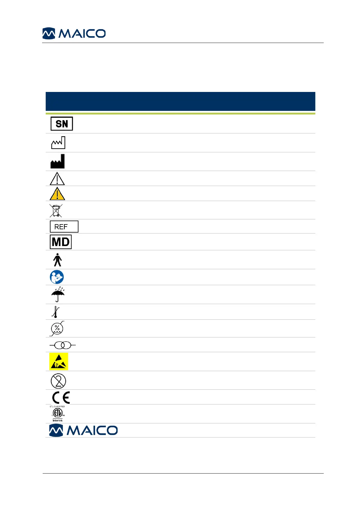 The following Table 11 gives an explanation of the symbols used on the device itself,