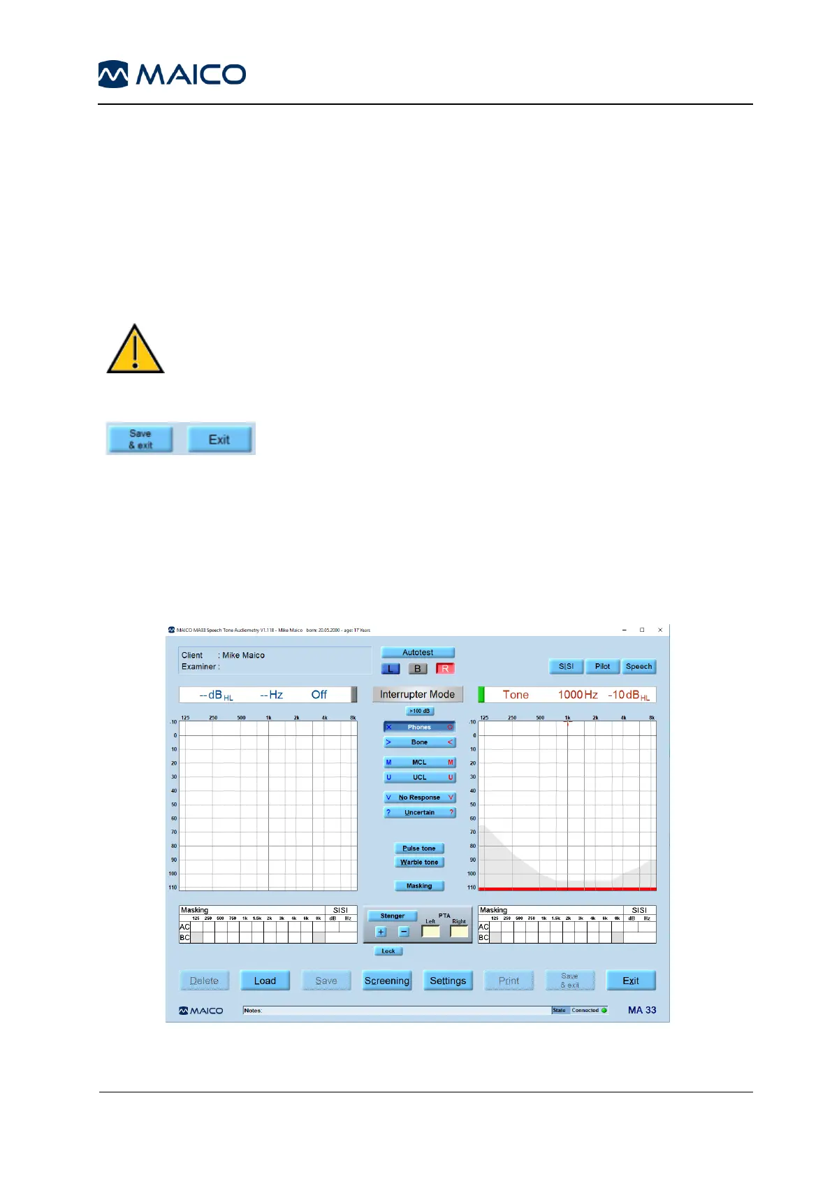 Start the patient database, load the patient to be tested, and then start the MA 33 software.