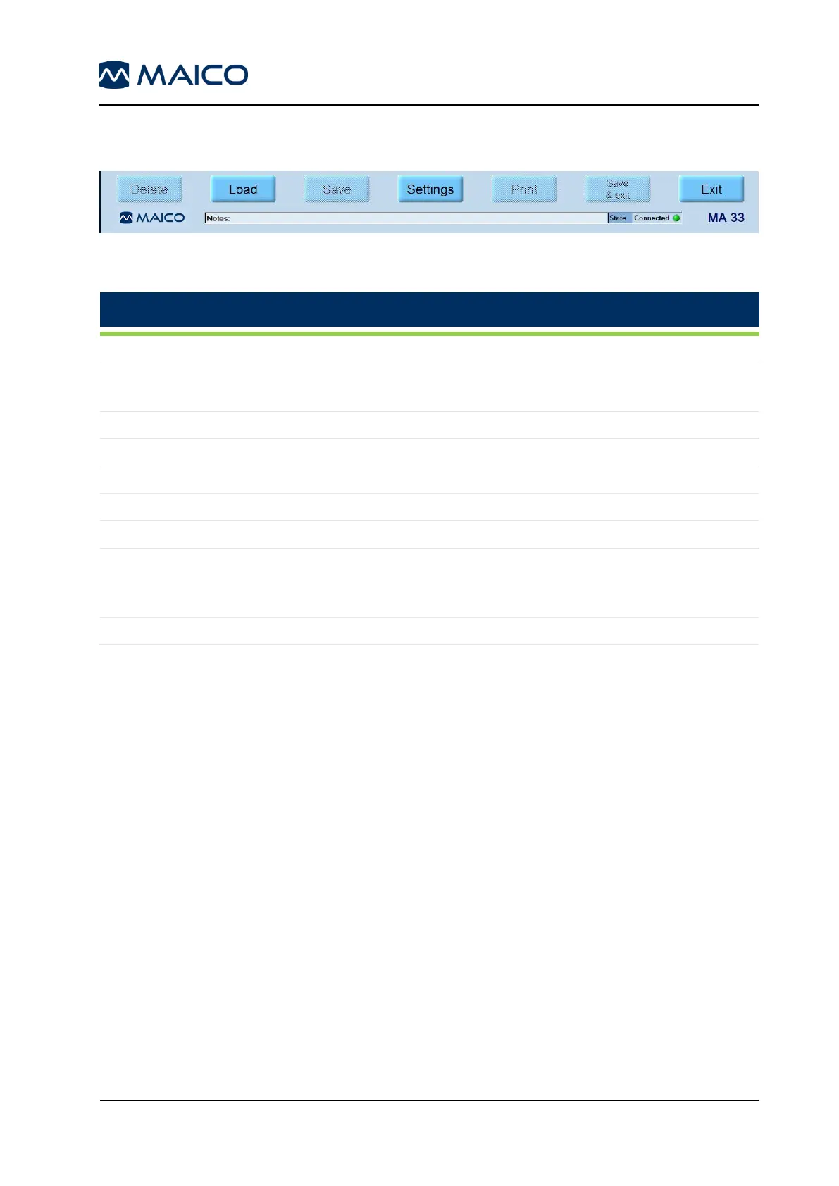 Table 14 Speech Audiometry Screen – Explanation of Buttons