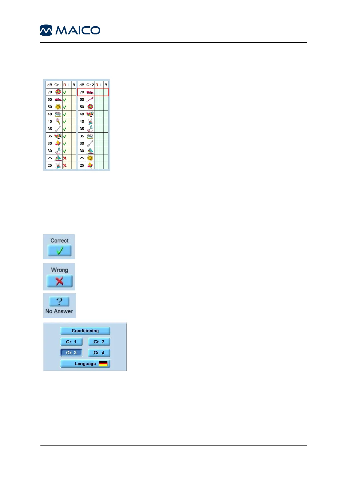 drop down menu Interval (3 s to 20 s or Correct/Incorrect) in the Speech test start