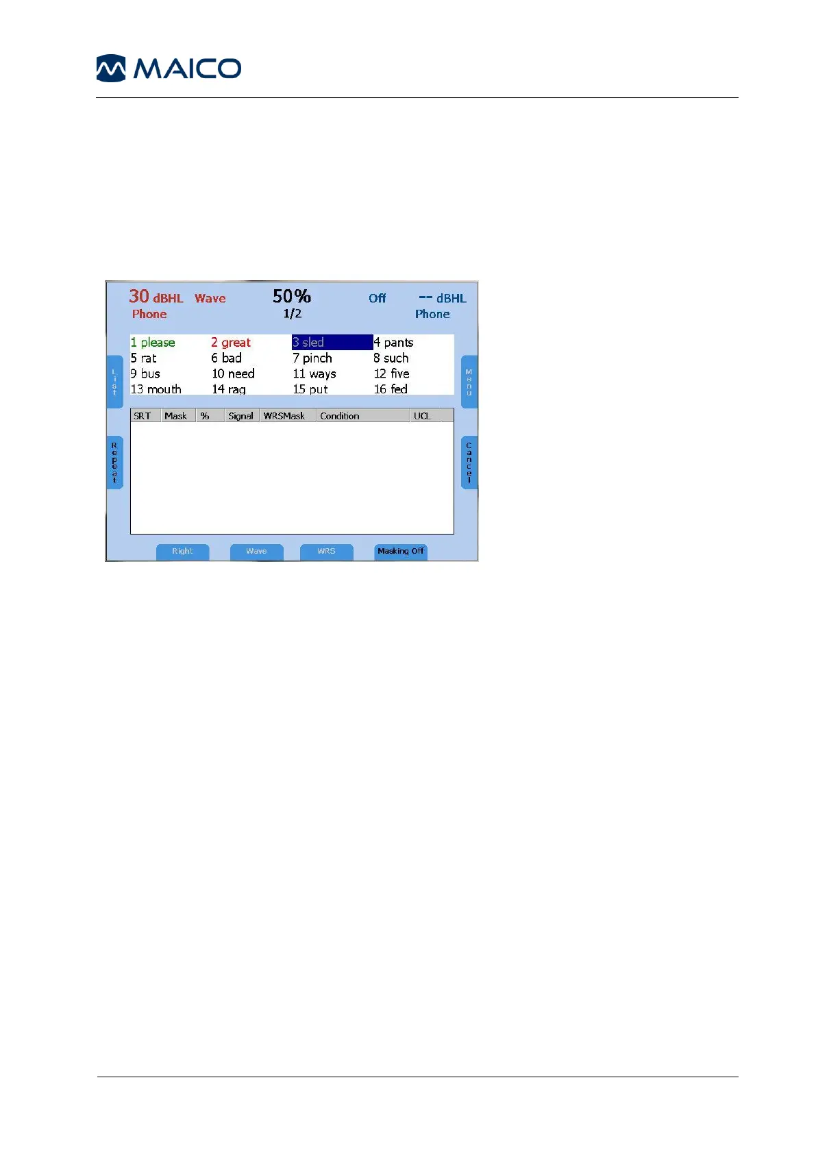 For the WRS test score, tally the correct words by pressing the frequency up (4)