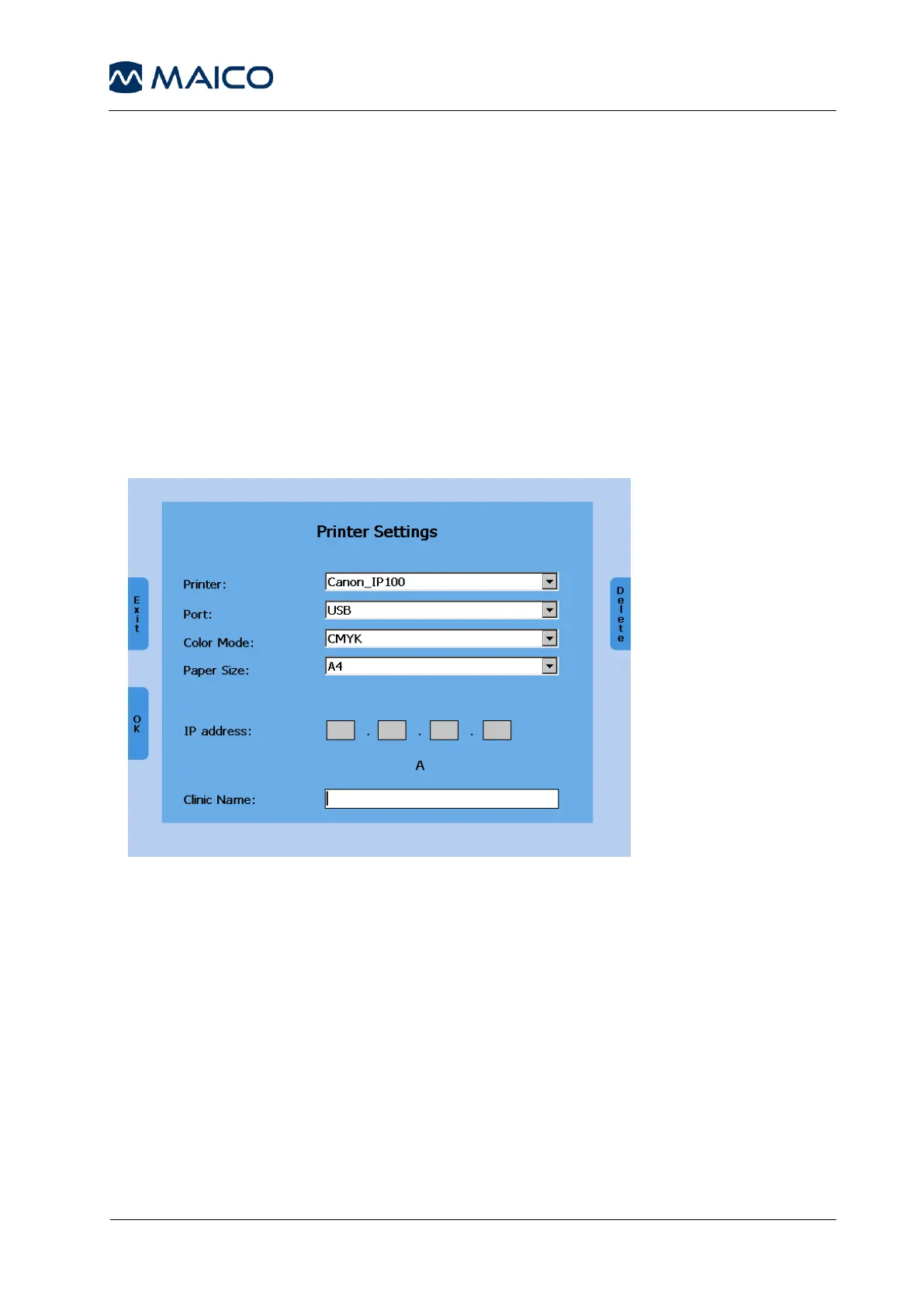 Additionally, the IP address of the printer needs to be entered in the field “IP