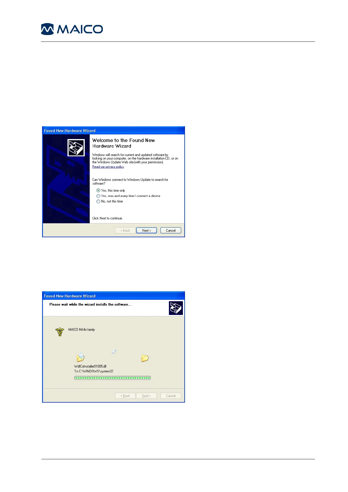 button. Wait till the MAICO MA4x family driver is installed and the operating