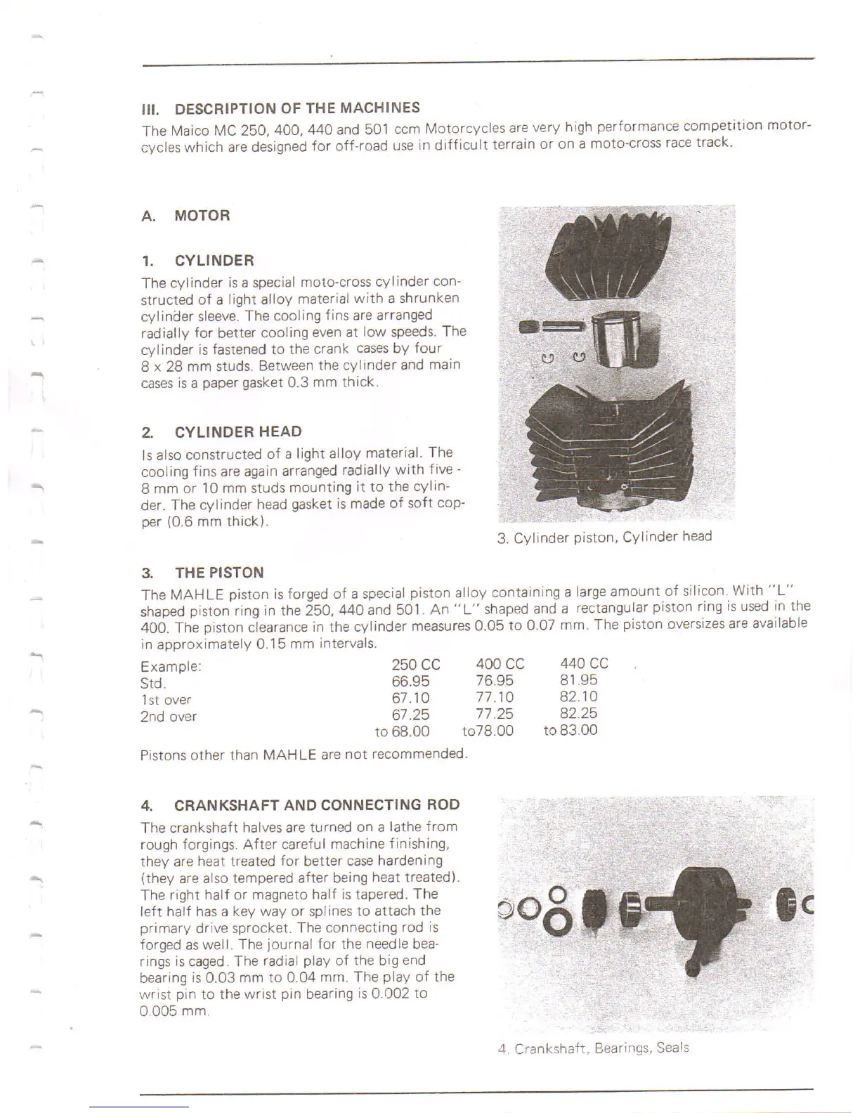 400. The piston clearance in the cylinder measures0.05 to 0.07 mm. The piston oversizes are available