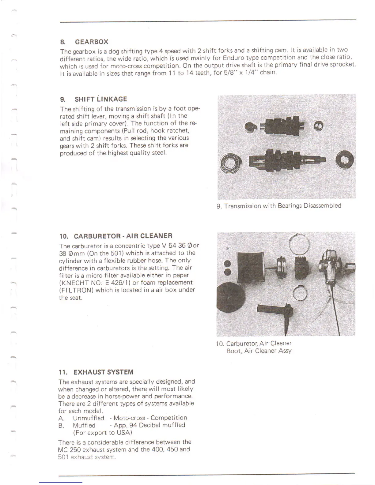 MC 250 exhaust system and the 400, 450 and