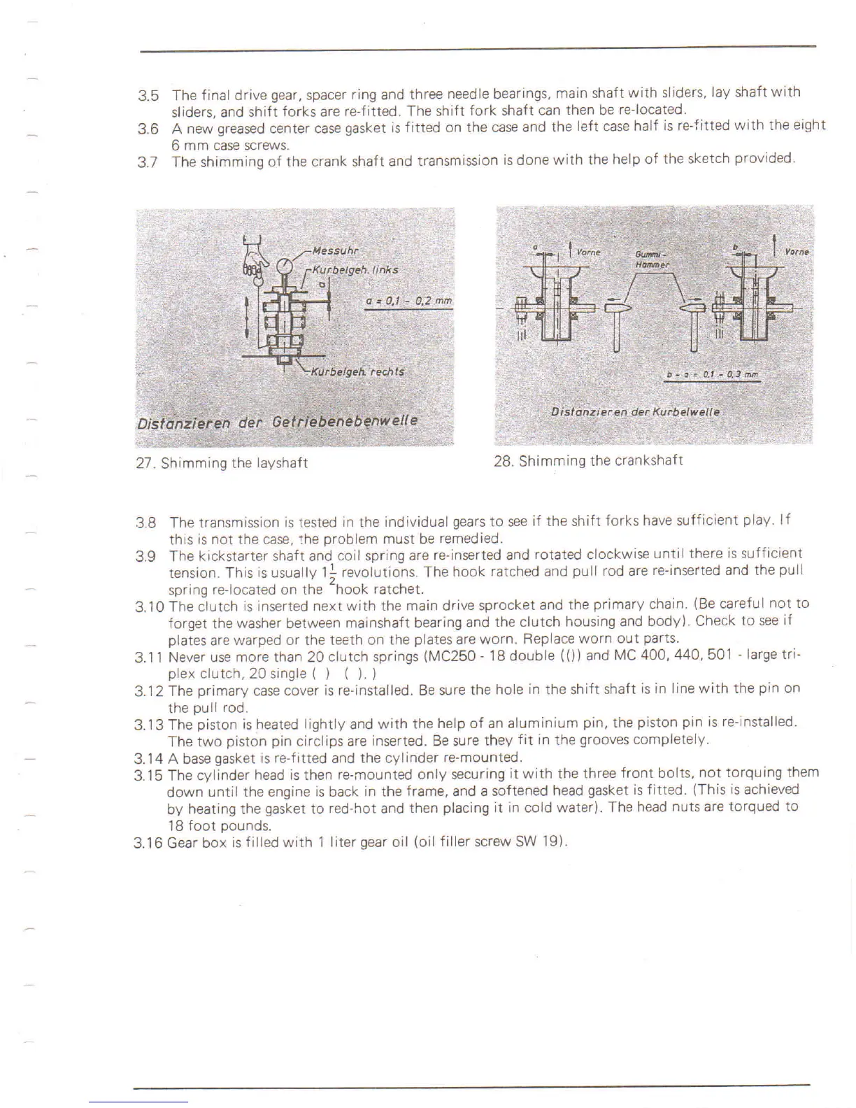 3.7 The shimming of the crank shaft and transmission is done with the help of the sketch provided.