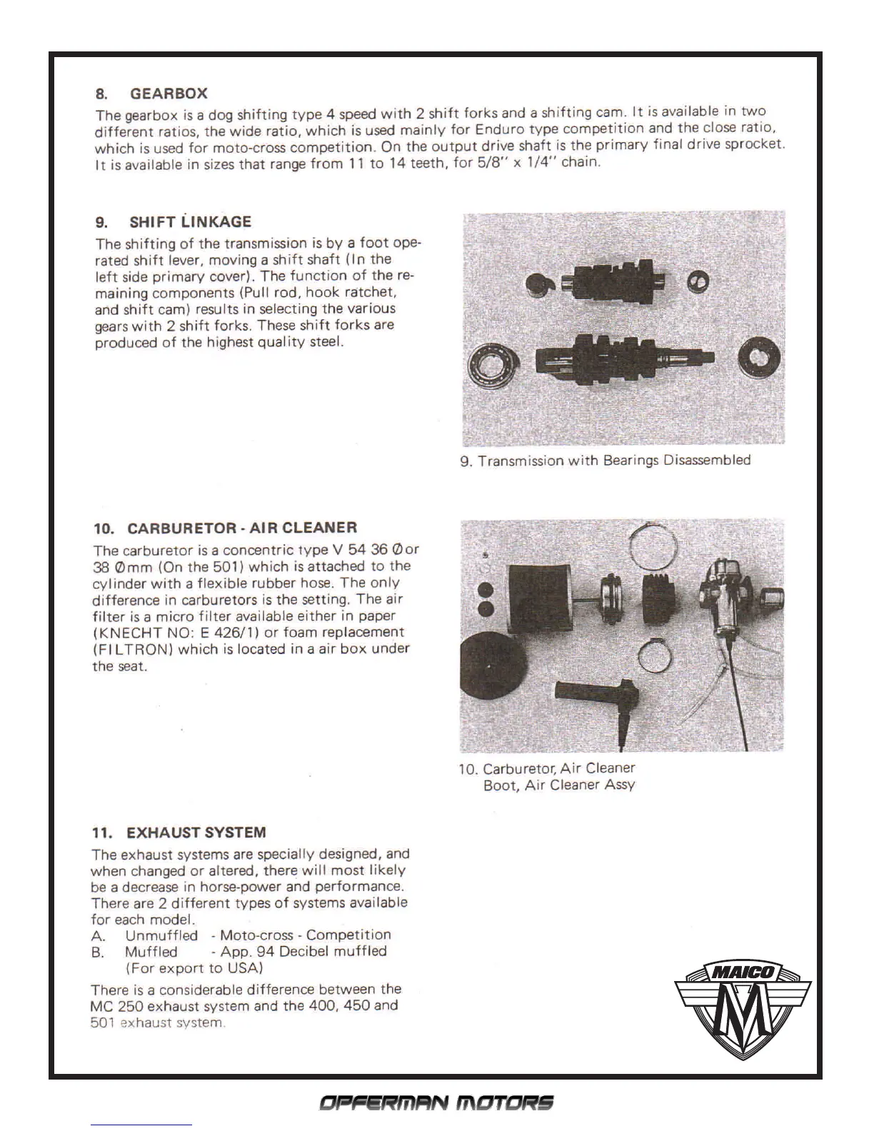 MC 250 exhaust system and the 400, 450 and