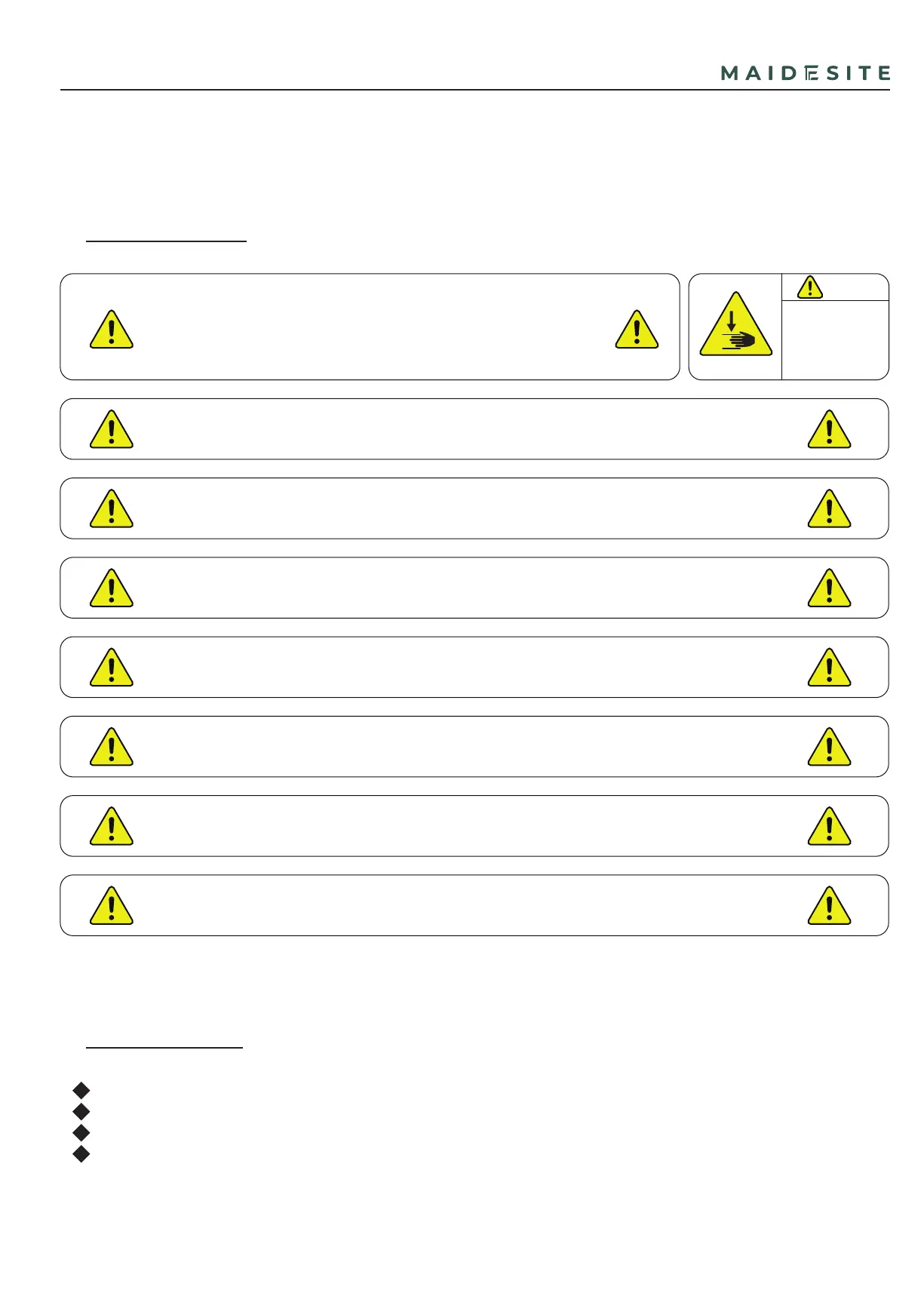 Do not sit or stand on the desk frame. Do not crawl or lie under the desk frame.