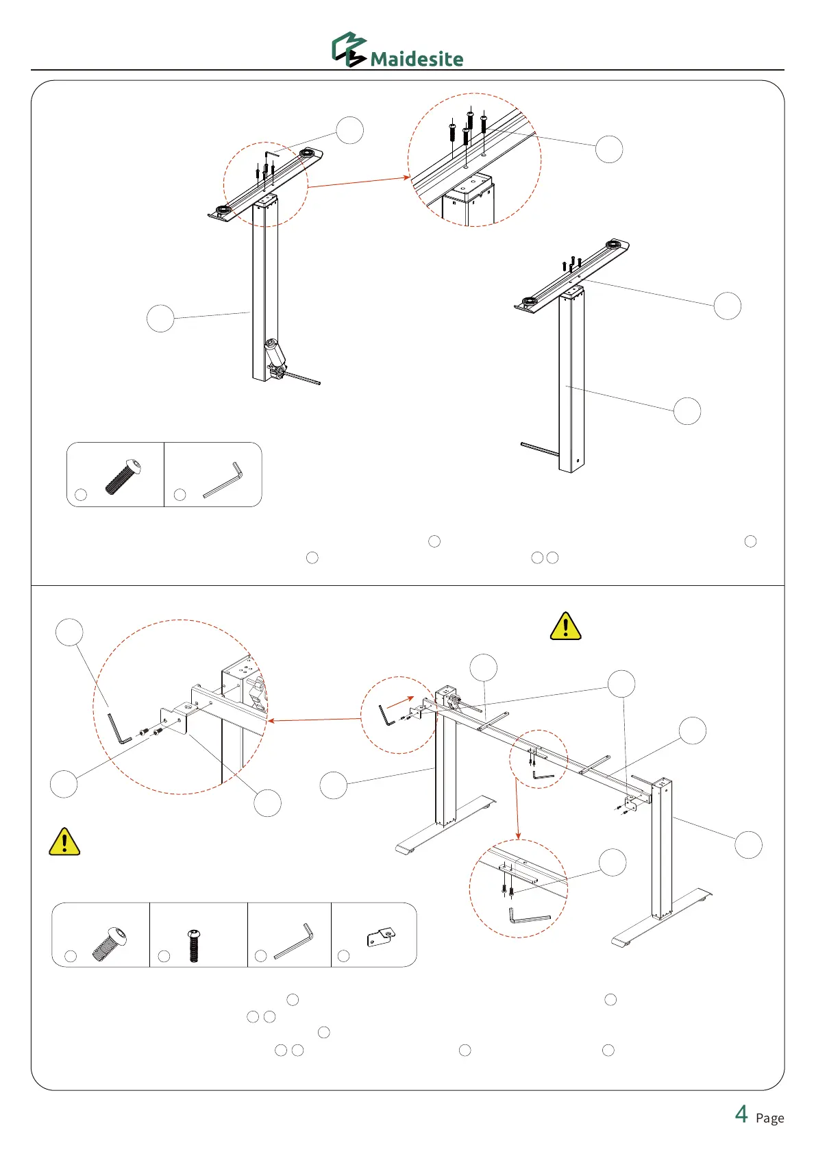 to connect the two desk feet to the left and right lifting columns from the bottom.