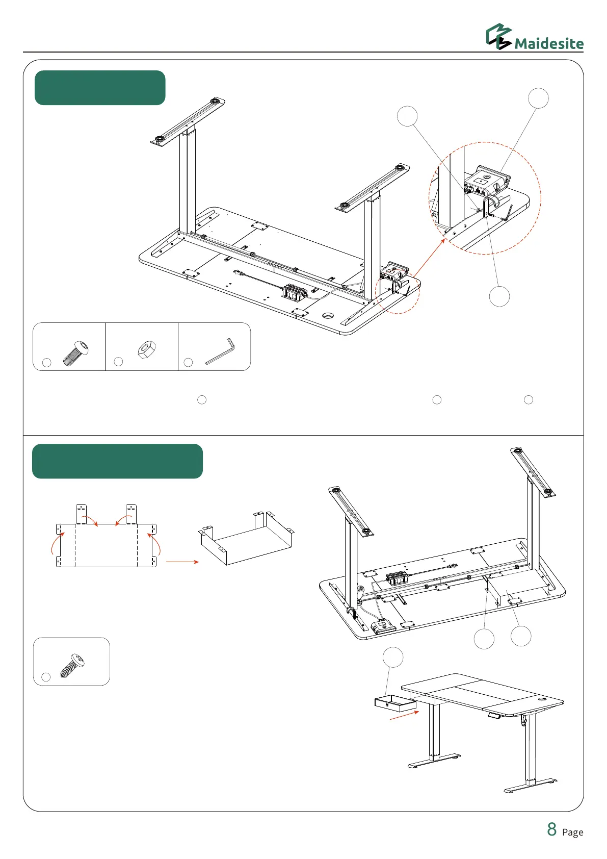 to fix the cloth drawer bracket to the desktop along the guide holes on the desktop.