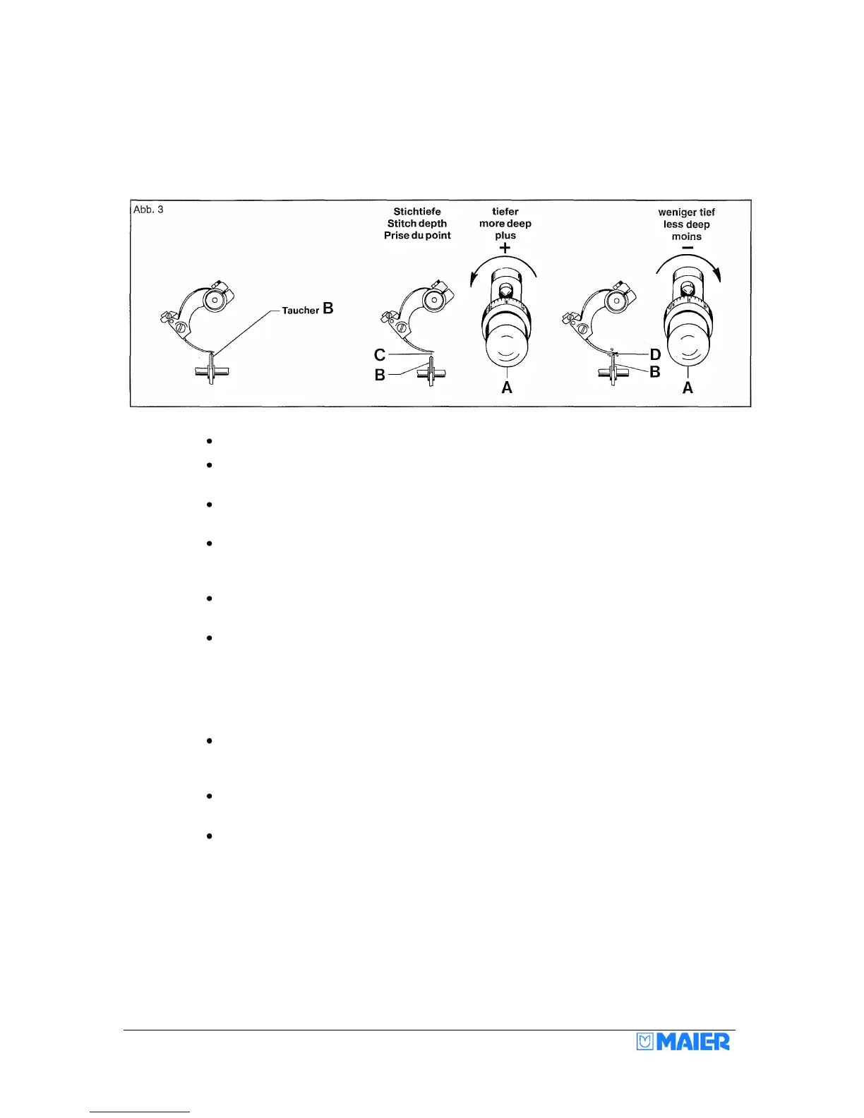 Maier 220 - Setting Stitch Depth (Penetration); Stitch Depth Settings for Classes 220-271