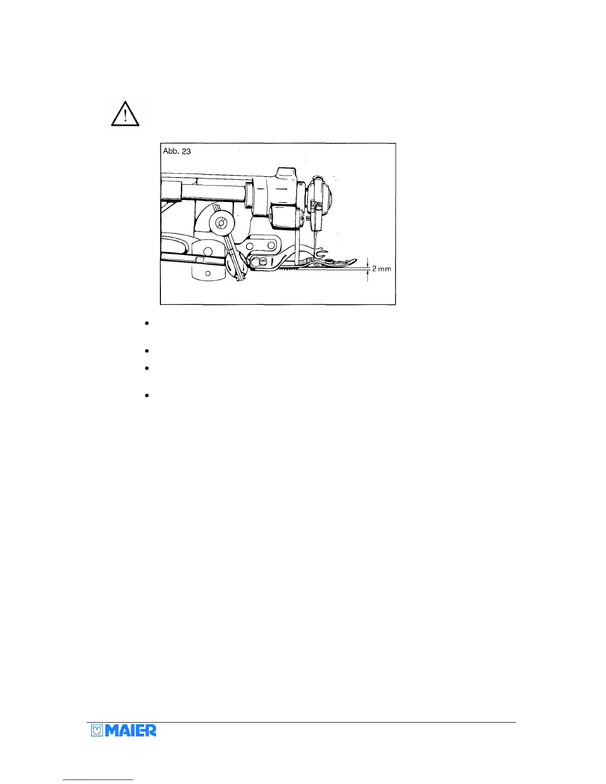 The feed dog must be adjusted such that – in its lowest position – it projects approx.