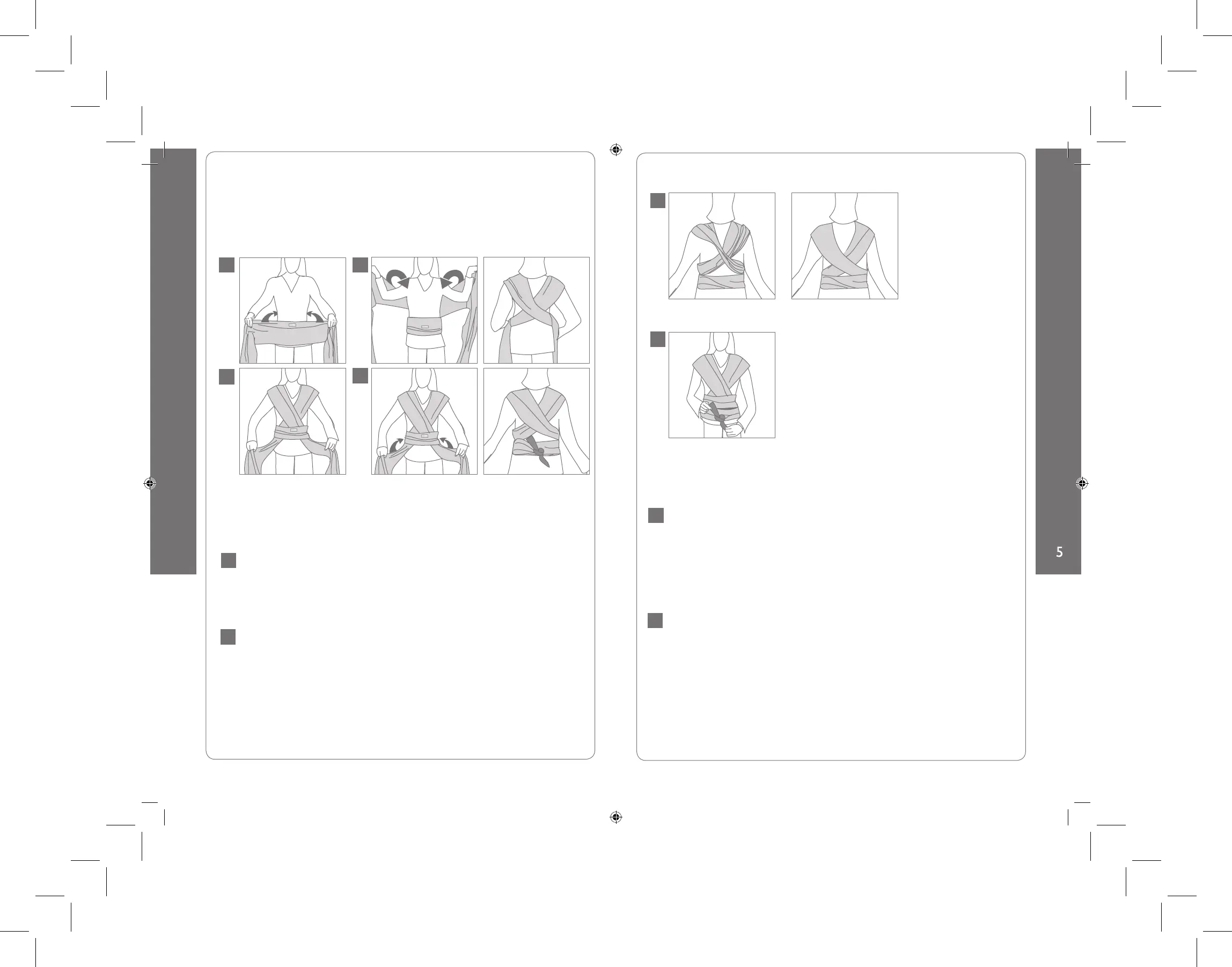 4. Passer les bandes dans le dos et faire un double nœud. L’écharpe doit être ajustée au porteur,