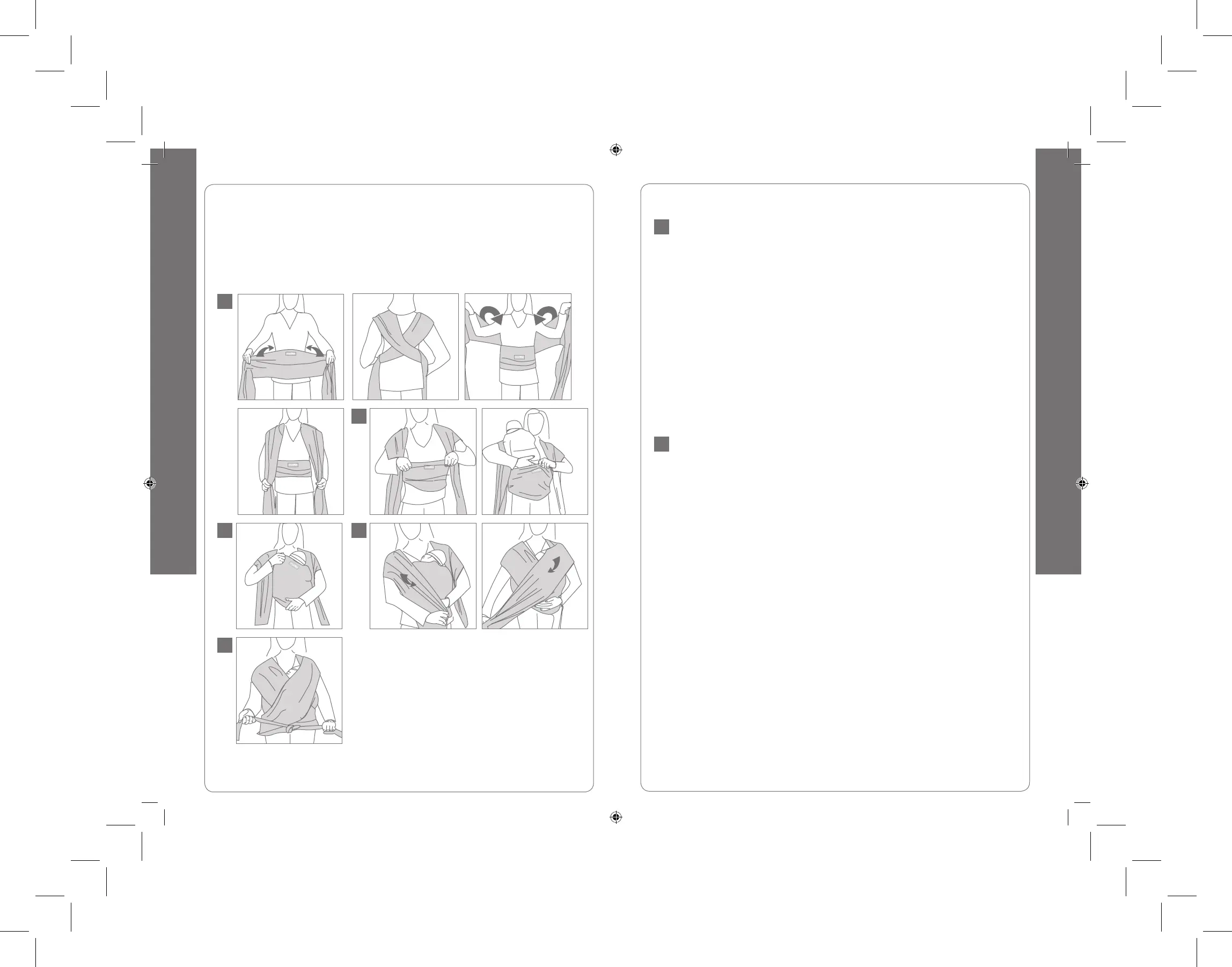 Ajuster le maintien de bébé en tirant sur les bouts de l’écharpe et en ajustant l’écharpe au Bébé.