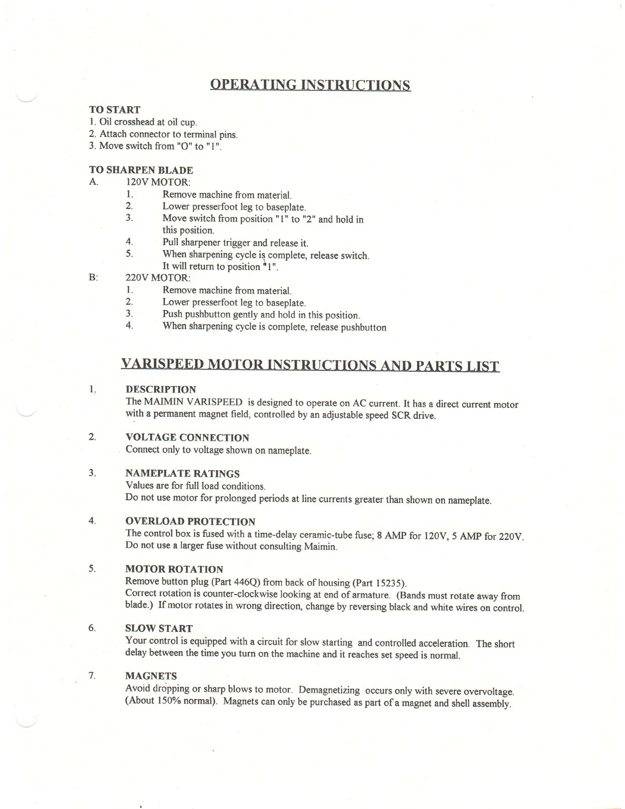 maimin SABRE 2000 - Voltage Connection; Nameplate Ratings