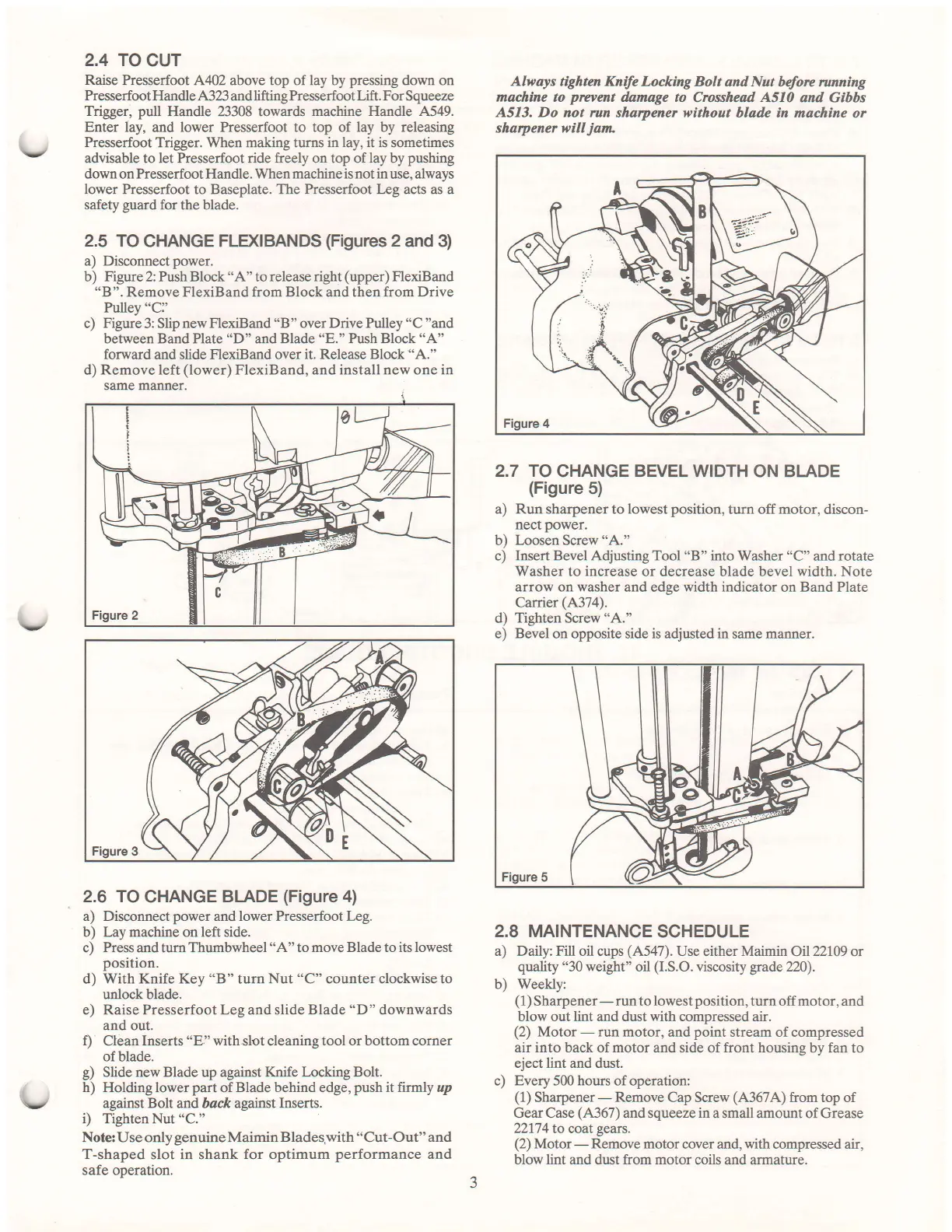 e) Raise Presserfoot Leg and slide Blade