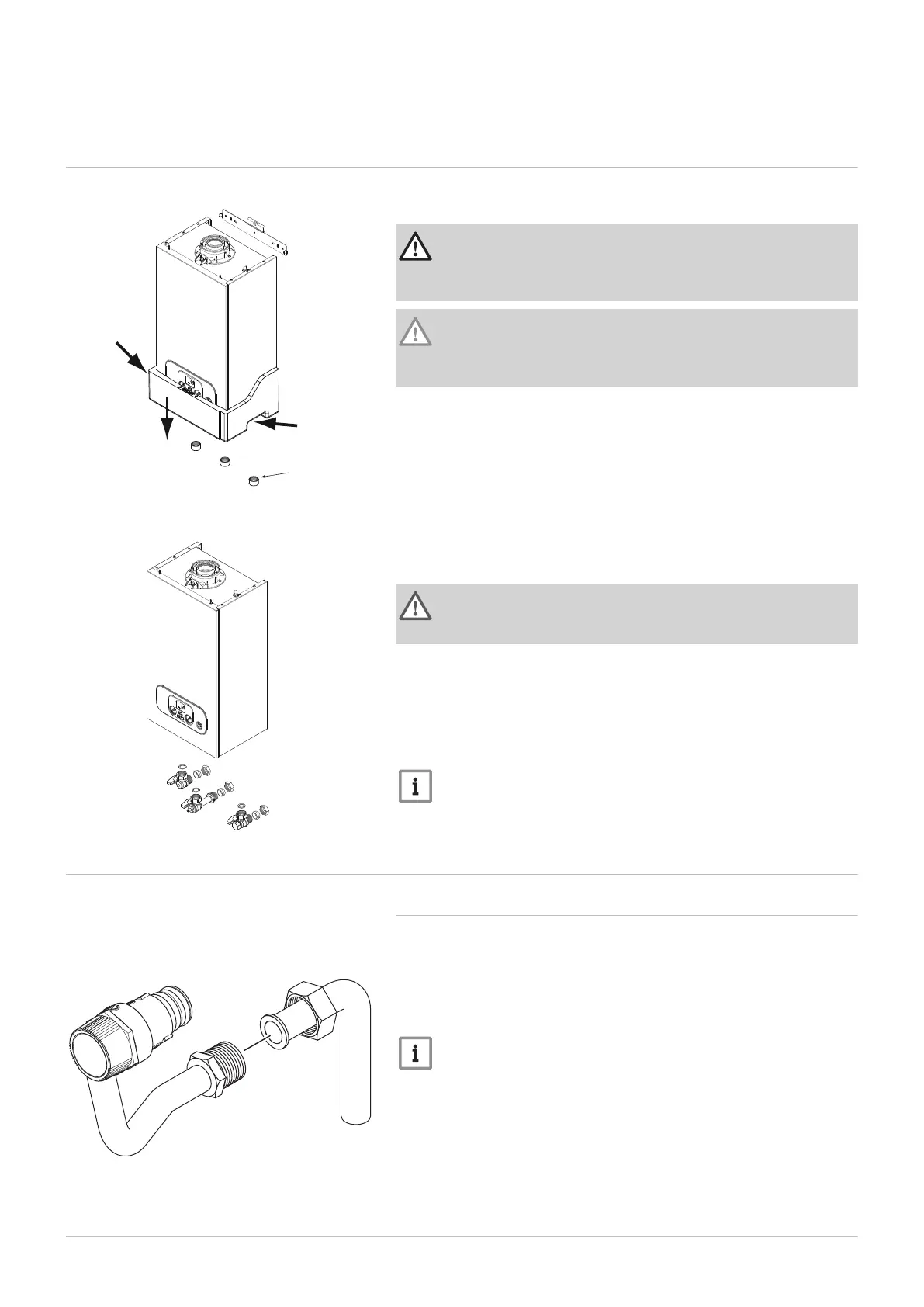 3. Remove the sealing caps from the boiler connections under the boiler